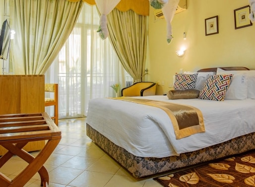 Deluxe Room: Enjoy a spacious, comfortable stay in our Deluxe Room, equipped with a cozy bed, a private bathroom, and modern amenities like free Wi-Fi, a flat-screen TV, and air conditioning. The room is tastefully furnished for relaxation, whether you’re here for business or leisure. Conveniently located near Jinja’s top attractions, restaurants, and shopping areas.