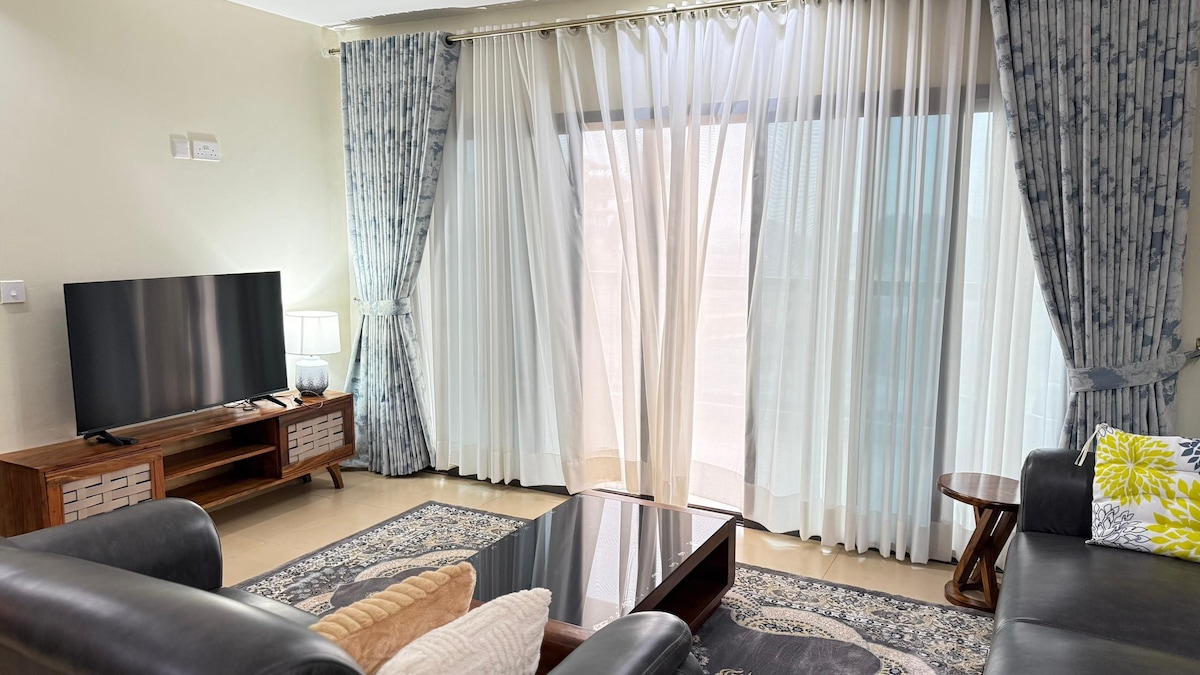 Cozy, private, modern, and absolutely stunning condo located in the heart of Najjera town with access to the city a few steps from the apartment. The space features an open concept layout, with modern tile finishes and antique designs for a comfy yet charming feel. This amenity filled condo offers convenience with a fully equipped kitchen, comfy queen bed, high speed Wi-Fi, workspace, smart TV, pool, gym and furnished patio for your relaxation. The condo offers tight security with 24/7 service.