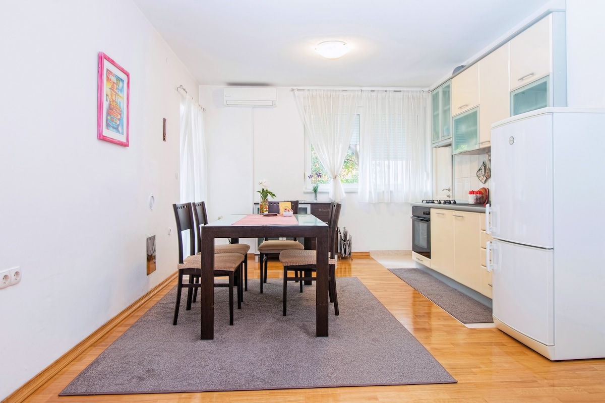 Experience the pinnacle of tranquility and sophistication at Zenith Oasis. It is a place where comfort meets luxury located in the heart of Mediterranean at Zadar, Croatia. It is equipped with large living room with dining space, large kitchen with premium appliances, main hallway and room hallway that separates 3 bedrooms with balconies and 2 bathrooms. We can accommodate up to 7 people. Book your stay with us today and elevate your vacation to new heights of relaxation and indulgence.