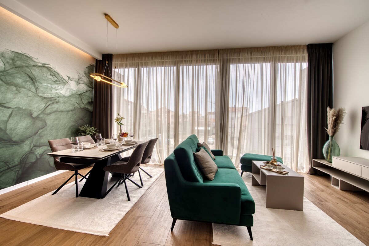 Experience the pinnacle of tranquility and sophistication at Zenith Oasis. It is a place where comfort meets luxury located in the heart of Mediterranean at Zadar, Croatia. It is equipped with large living room with dining space, large kitchen with premium appliances, main hallway and room hallway that separates 3 bedrooms with balconies and 2 bathrooms. We can accommodate up to 7 people. Book your stay with us today and elevate your vacation to new heights of relaxation and indulgence.