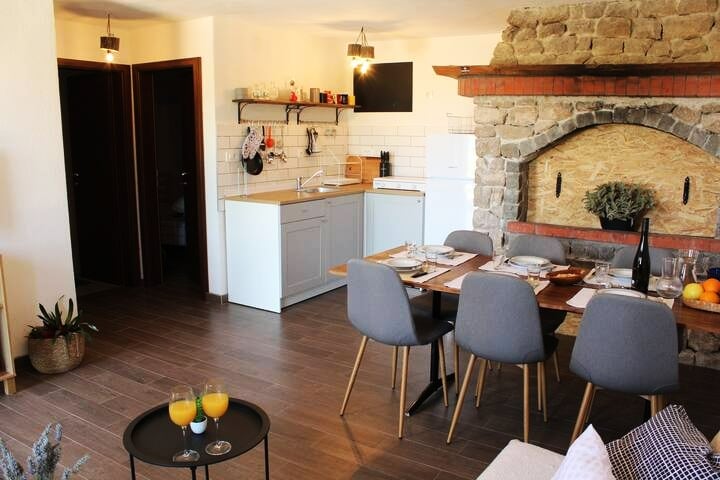 Villa Nana is a renovated old stone house located in Žman, in a calm neighbourhood, 400 meters from the beach, local super market restaurant and a caffee. The house includes a spacious garden, two terraces, and an outside barbecue and an inside fireplace. There are also 3 BIKES available to explore the island as well as a KAYAK for two people.