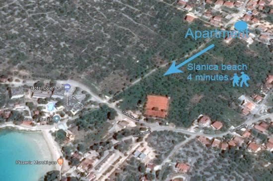 Opustite se u dvosobnom apartmanu sa 2 bračna kreveta plus pomoćni ležaj,kao i mogućnost korištenja putnog kreveta za bebu. Apartman se nalazi u mirnoj ulici bez puno prometa,okružen maslinama i borovom šumom. Nalazi se u obiteljskoj kući,ima svoj besplatan parking,tv,perilicu,klimu,wifi, veliko dvorište na kojem se ujedno nalazi i prostor za sjedenje,druženje kao i razne igre za djecu,također ima i mogućnost korištenja roštilja. Do plaže ima 5 min hoda,kao i do centra i restorana. Dobrodošli