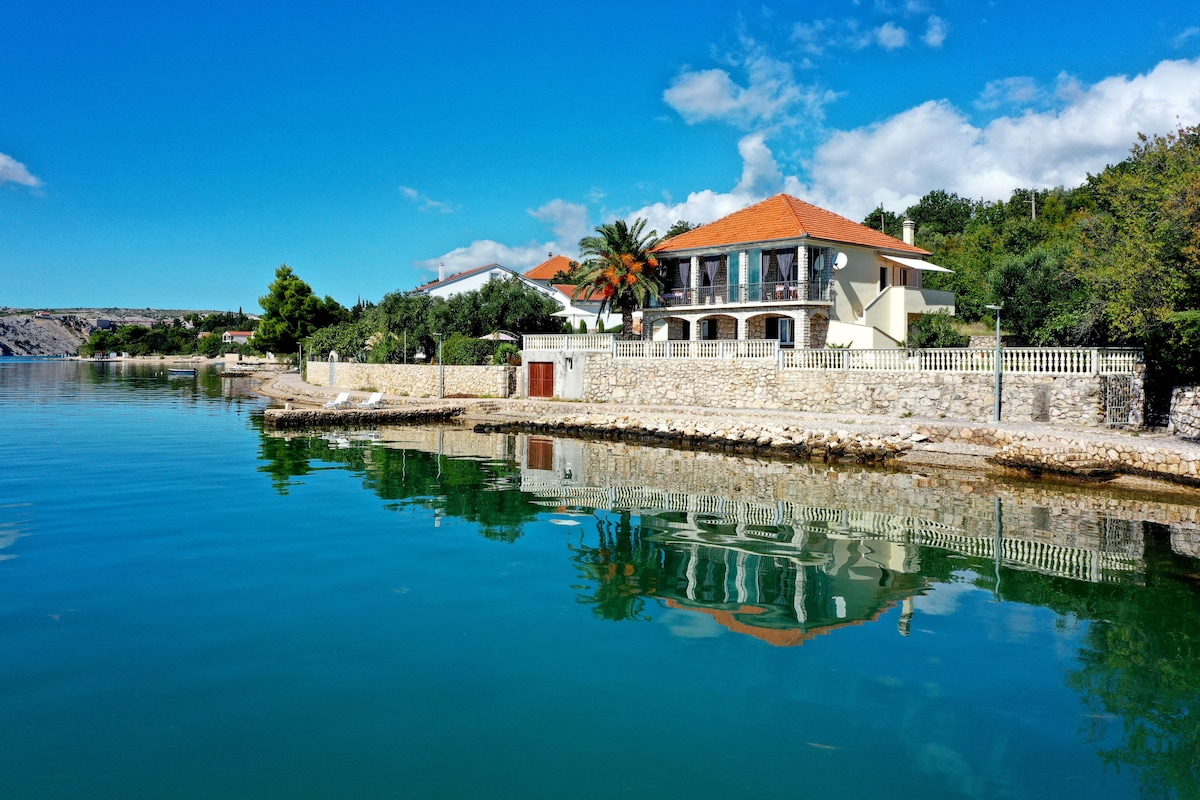 Villa is located first row to the sea in a quiet environment. Visitors can enjoy a spacious, wonderful terrace with a unique view. In the immediate vicinity there are quiet beaches that offer a real break from everyday life, but also a beach with a beach bar that offers entertainment. This unique accommodation is decorated in Dalmatian style.