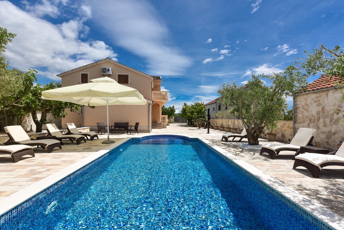 This beautiful villa with heated pool, hot tub and sauna is set on a remote and secluded landscape with a breath-taking view over the valley Heated pool from April to November Great place for relaxing and a starting point for exploring the region and Croatia! City distance Zadar is 28 km (airport 20 km) away Šibenik is 50 km away Split is 125 km (airport 99 km) away Attraction distance Plitvice lakes 125 km away Krka 45 km away Kornati 30 km away