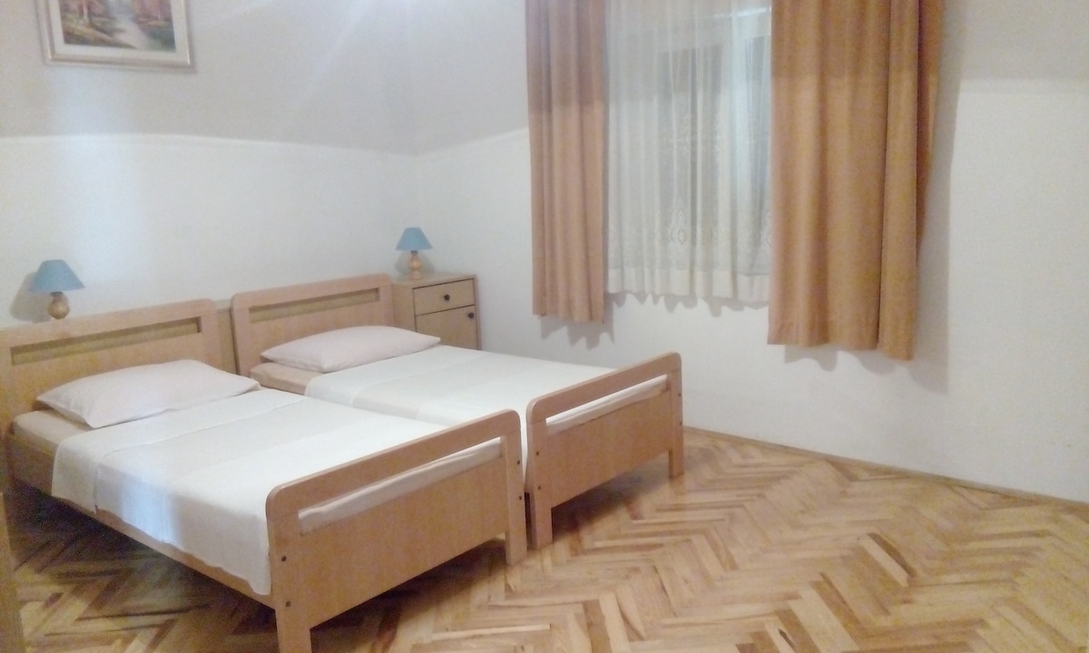 Beautiful Apartman Marina Bibinje. In a quiet position, 300 m from the sea, 300 m from the beach, in a cul-de-sac. Big private property. In the house: washing machine, kichen, new bathrome. Parking at the house on the premises. Shop 300 m, restaurant 1 km, pebble beach, shingle beach, rocky beach 300 m.