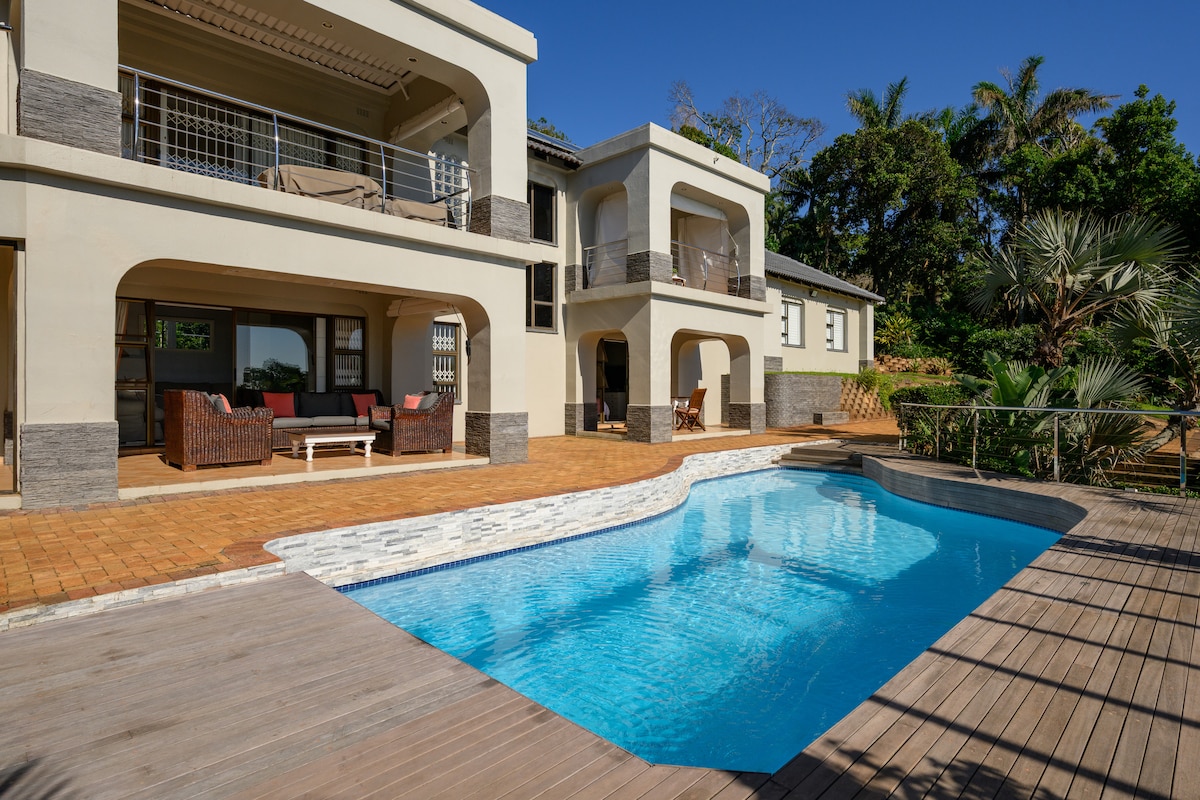 Surrounded by beautiful trees and greenery, this massive villa features an undercover veranda with a built-in braai and outdoor dining suite, multiple patios, and views to die for. A31 is one of the biggest on the estate, sleeping 10 - 12 guests comfortably. Featuring a bar with a pool table, a jacuzzi & a sparkling pool, DSTV, WI-FI, bar, and so much more. Selborne private beach club access included when booking with Searenity. Villa A31 is perfect for the bigger family or golf group.