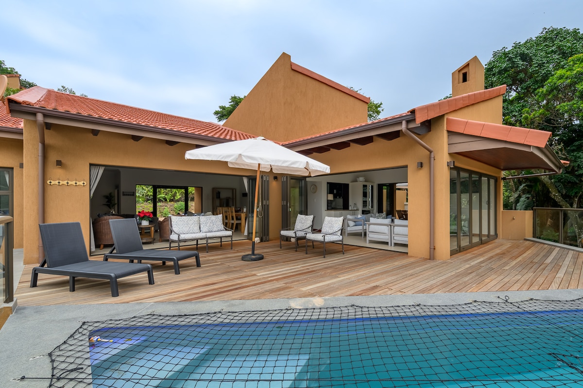 This villa offers: Villa has Back Up Power and Back Up Water. THIS IS A SELF-CATERING VILLA 2 Bedroom both ensuite bathrooms and also an outside shower in the main bedroom to enjoy the African skies / stars, Full kitchen (including a dishwasher), Big patio and braai area overlooking a tranquilent natural water stream running into the main lagoon, TV-room with smart TV, just log into your own DSTV, Netflix Etc account. This unit is also fitted with airconditioning.