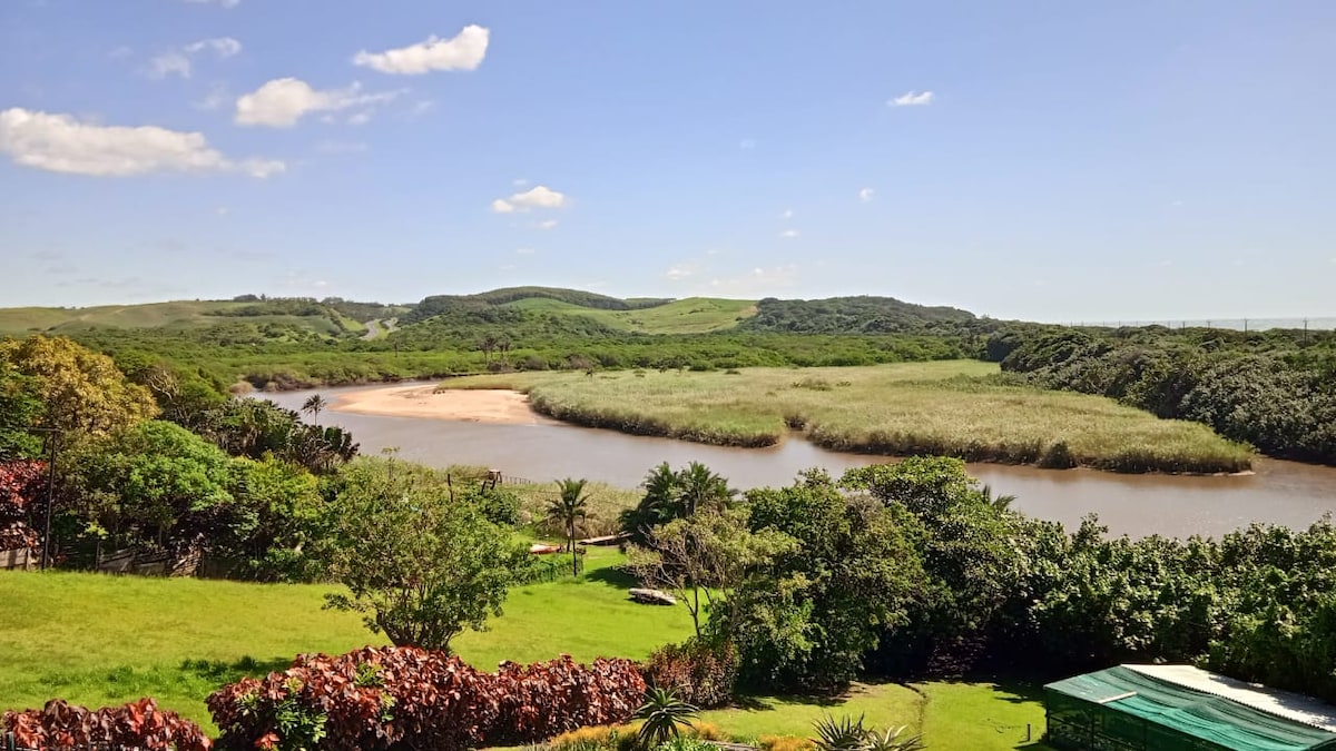 Welcome to our family-friendly 2-bedroom, 1-bathroom cottage on Black Rock River. Enjoy views from the undercover deck and watch the swallows nesting in summer. The lagoon is perfect for swimming, fishing, and kayaking to the beach. Guests can use the river deck, braai area, and kayaks. The unit features a queen bed, kids’ room with a 3/4 bunk bed, WiFi, TV, a 2-plate gas stove, air fryer, and microwave. Secure parking behind an automatic gate, plus there are three friendly dogs on-site!