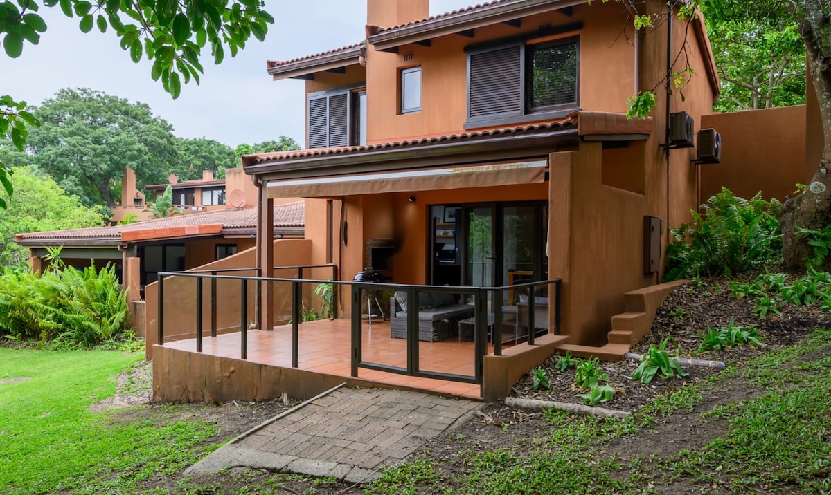 This villa offers: Villa has Back Up Power and Back Up Water. THIS IS A SELF-CATERING VILLA 2 Bedroom both ensuite bathrooms and also an outside shower in the main bedroom to enjoy the African skies / stars, Full kitchen (including a dishwasher), Big patio and braai area overlooking a tranquilent natural water stream running into the main lagoon, TV-room with smart TV, just log into your own DSTV, Netflix Etc account. This unit is also fitted with airconditioning.