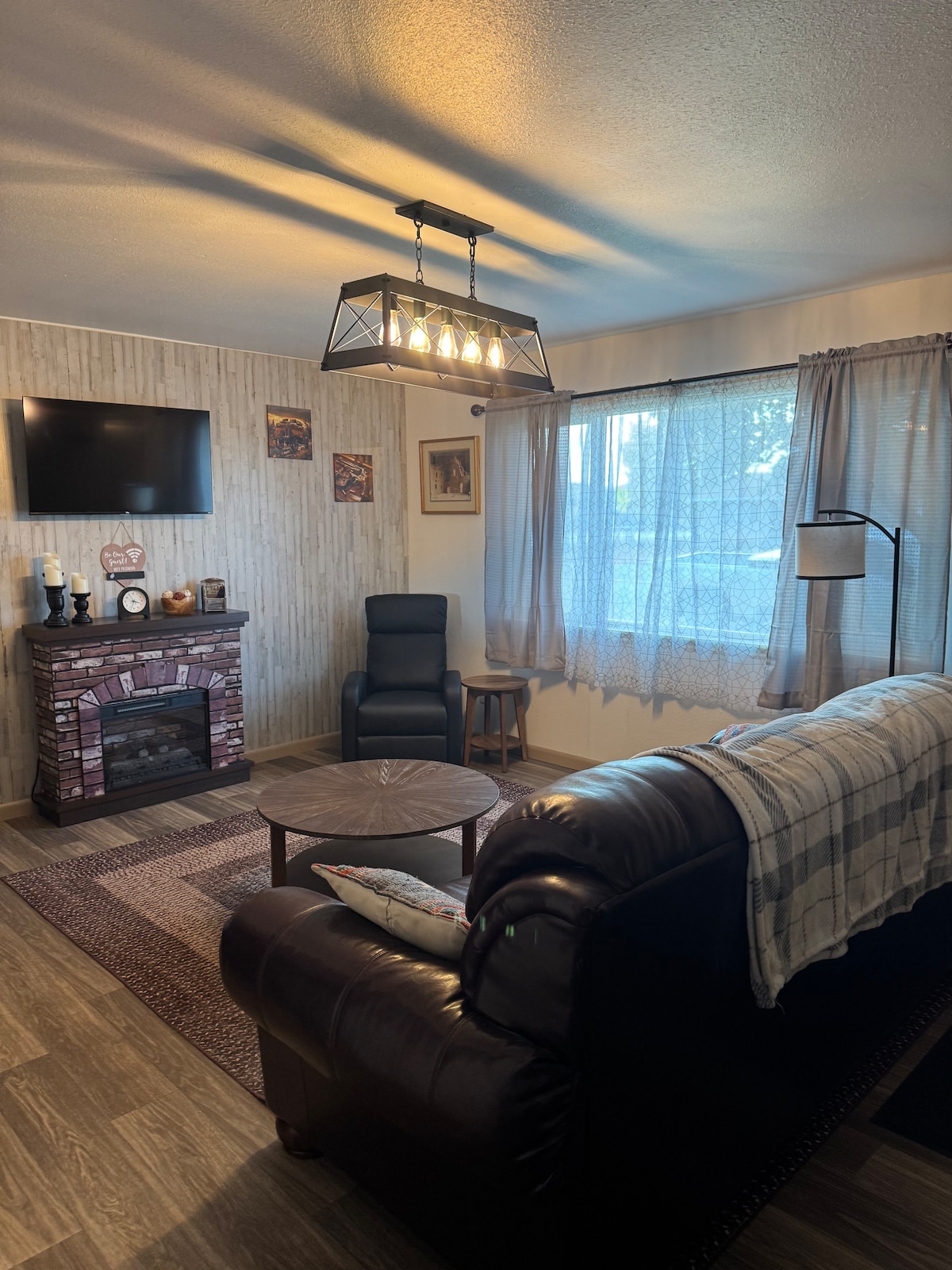 Escape to Lake View Ranch, a charming 2-bedroom, 1-bath basement apartment with stunning views of Steinaker Lake. Enjoy a kitchen, cozy living room, and private movie theater room. Private entrance. Ride your bike or side by side to Docs Beach and discover over 1,000 acres of trails. Conveniently located near the Rod and Gun Club, biking trails, lakes, Ashley National Forest, and more. THIS IS A NON PET UNIT. We offer other units for service animals. No semi truck parking.