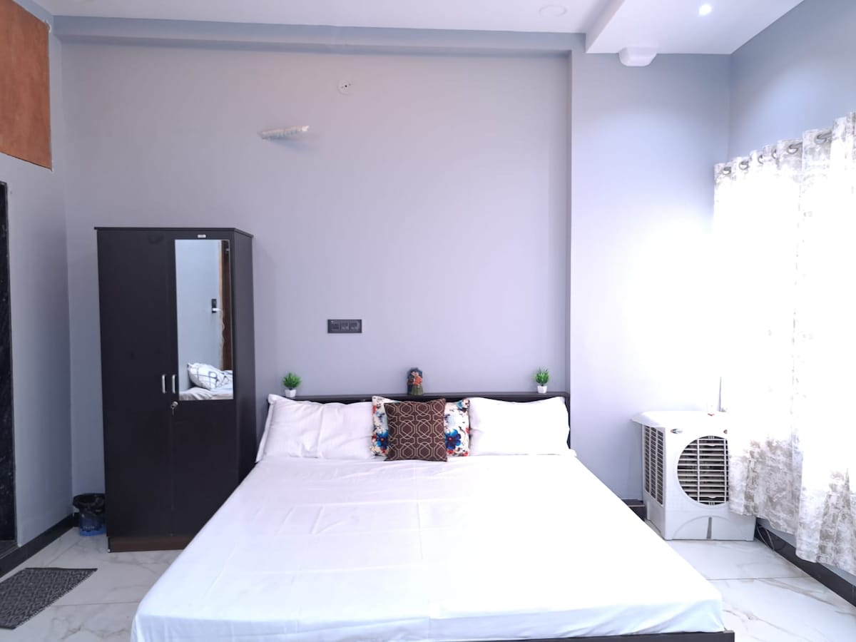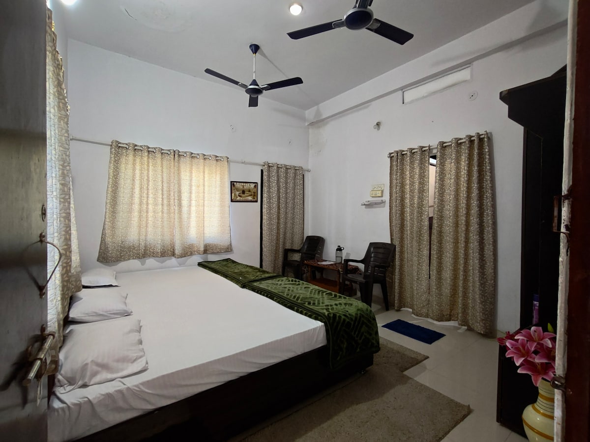 Escape to a peaceful, private studio just 10 mins from Mahakaleshwar Temple. Ideal for pilgrims, couples & remote workers, it features a comfy bed, AC, work desk, mini-kitchen & attached bath. Enjoy hot showers, high-speed Wi-Fi & easy access to food, shops & temples. Housed in our family home, it offers safety, comfort & local charm. No TV—just real experiences. Light veg cooking only. Perfect for a restful stay in spiritual Ujjain.