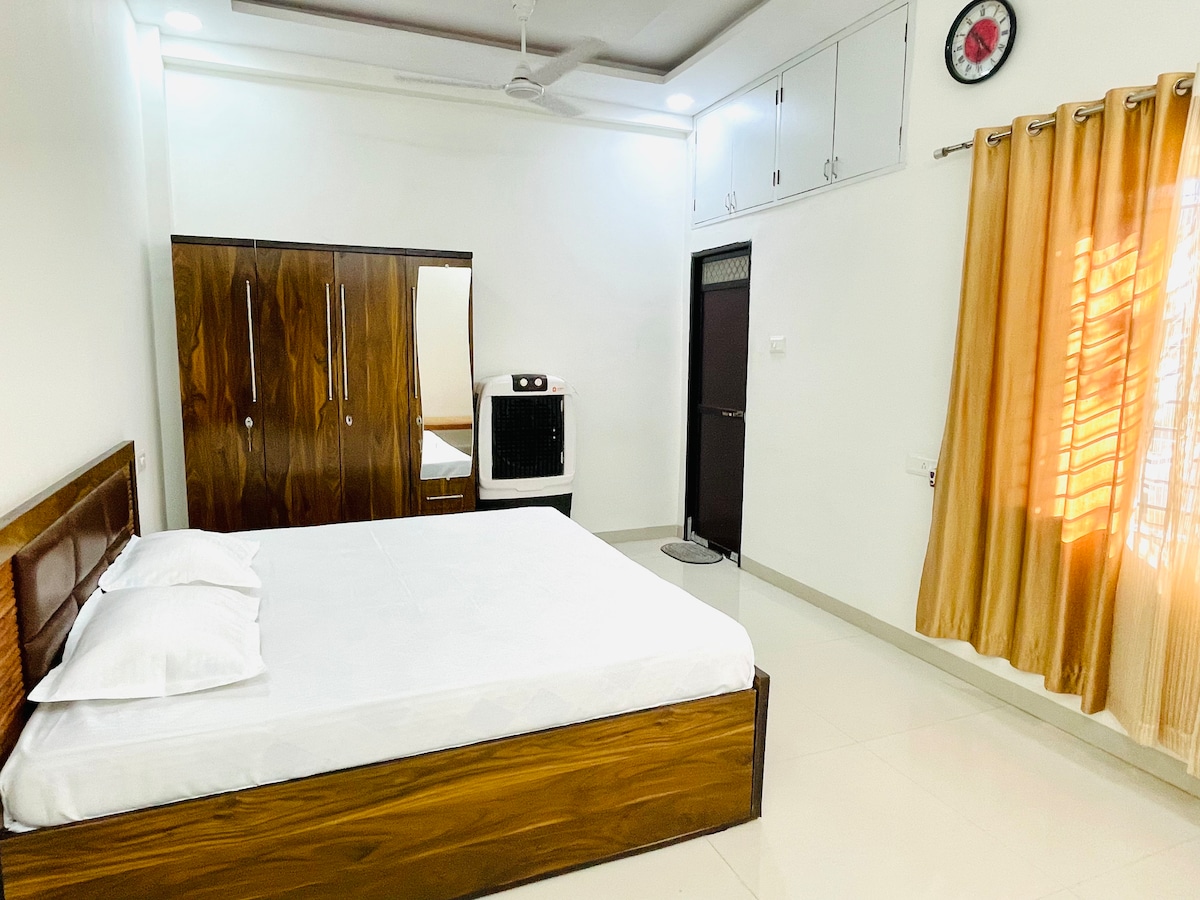 Welcome to our Family Retreat - a spacious haven perfect for groups or families seeking comfort and convenience. This elegant floor features four cozy double bedrooms, bathrooms, kitchen and balcony. The perfect retreat for those on a Mahakal pilgrimage. Just 3 km from the Mahakaleswar Jyotirlinga Mandir, our peaceful property offers a comfortable stay. Conveniently located 2.5 km from the city center, our homestay is an ideal base for exploring Ujjain's spiritual landmarks.