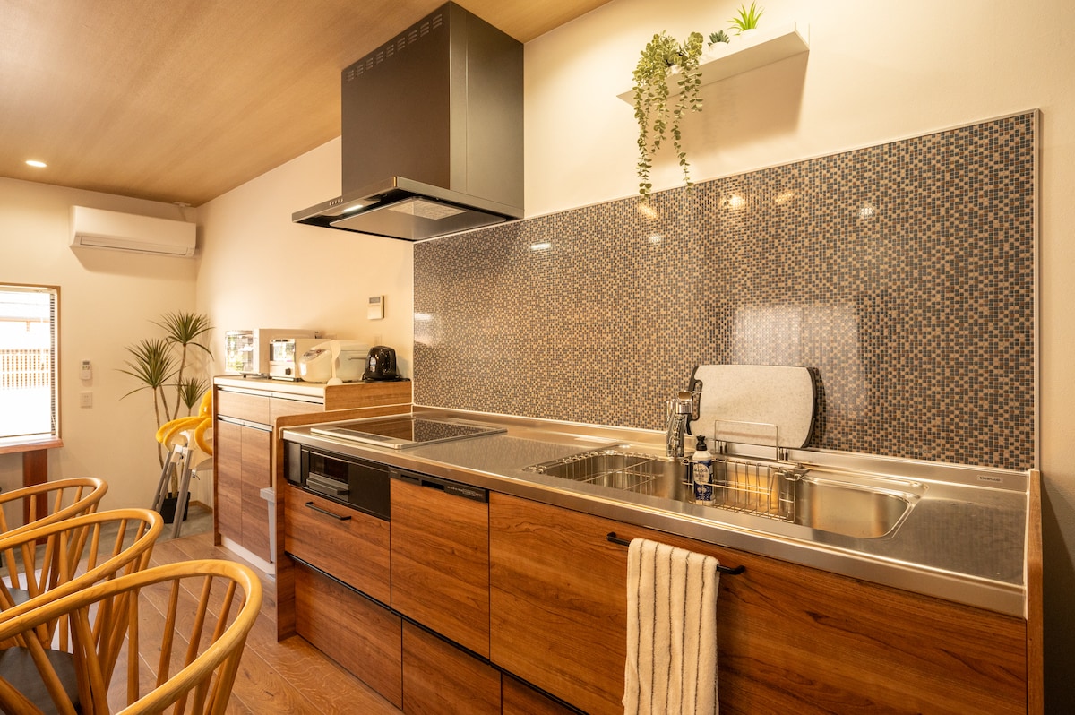 Niwa House is a small renovated 2 bdrm house, part of our 4 fully renovated Japanese houses (OKO, Casa Kura & Gallery House) Rear wooden deck onto a Japanese garden. Modern bathroom. Dining and living space with open fully equipped kitchen; WiFi, 50" smart TV with BBC and CNN; library of craft and art books; large collection of antique Japanese pottery and lacquer-ware. Walk anywhere in Akizuki in 10 minutes. Accommodation tax included (200JPY/person/night)