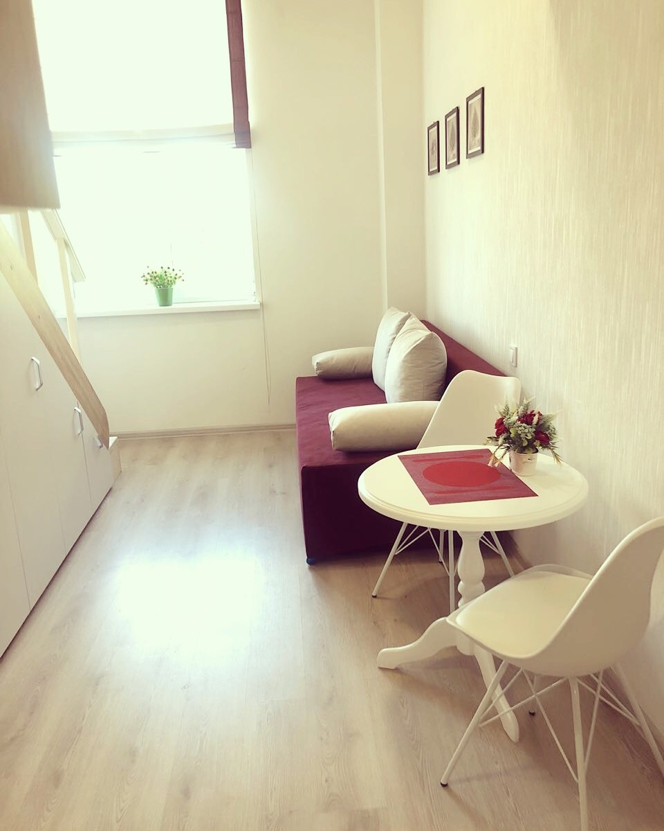 The apartment can comfortably accommodate two adults + one child, in the bright room there is a double bed, a wardrobe/hanger for clothes. The kitchen is equipped with everything you need to prepare delicious meals. The apartments have all the necessary household appliances: LED TV, refrigerator, washing machine, electric kettle, microwave oven, hair dryer, iron, ironing board, necessary dishes, Wi-Fi Internet, linen, towels, slippers, liquid soap, shampoo, tea, drinking water.