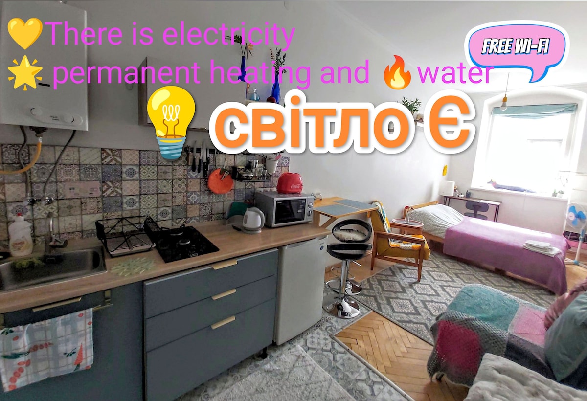 Приглашаем Вас в нашу уютную квартиру в самом центре города возле Оперного театра. Тихая улочка, где она находится предоставит возможность отдохнуть от городской суеты и в тоже время находиться в эпицентре всех событий, ведь все достопримечательности и ресторации находятся в быстрой пешей доступности. Есть возможность безконтактного заселения (мини сейф) в любое удобное время суток. Мы подготовили Вам одноразовые тапочки, мини-косметику, чай, кофе и многое другое. До встречи во Львове!