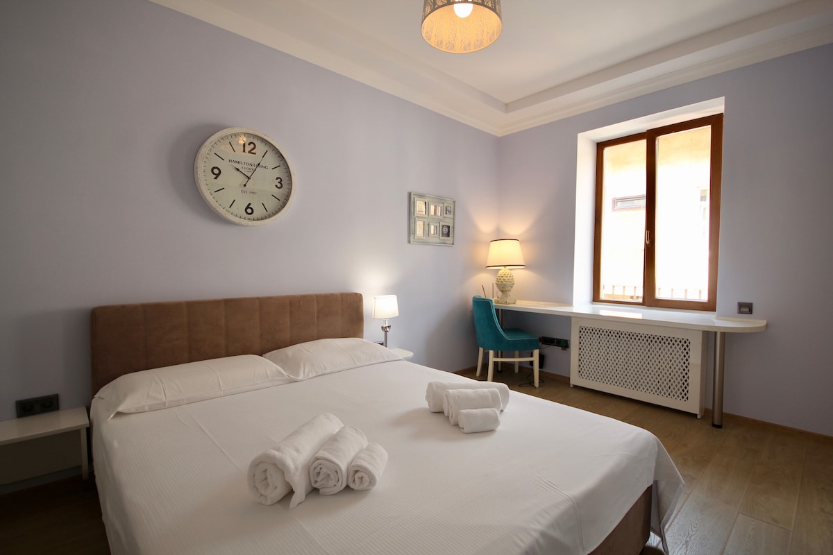 Наша уютная квартирка расположена в самом центре Одессы в нескольких минутах от Дерибасовской в тихом дворике старой Одессы. Хорошо освещённая улица с множеством зелёных деревьев и кафе, где можно посидеть попить кофе и подышать свежим воздухом. В самой квартире есть всё необходимое для комфортного и гармоничного отдыха. Это двухэтажная квартира- на первом этаже кухня-студия с раскладывающимся диваном и огромная ванная комната; на втором этаже просторная спальня с большим окном.