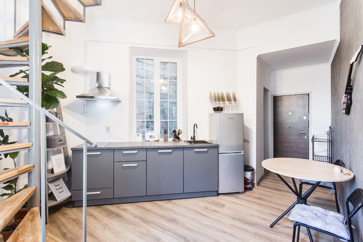 Situated on a picturesque descent in a colorful historic Odessa courtyard near all major sights, Shevchenko park and Lanzheron beach. Equipped with modern technology: smart TV, sound bar, capsule coffee-maker, AC, etc. Design inspired by Japanese esthetics Wabi-sabi. Квартира розташована в колоритному одеському дворику поряд з усіма визначними пам'ятками, парком та пляжем. Оснащена сучасною технікою: Smart TV, саундбаром, кавоваркою, кондиціонером та ін. Дизайн в японській естетиці вабі-сабі.
