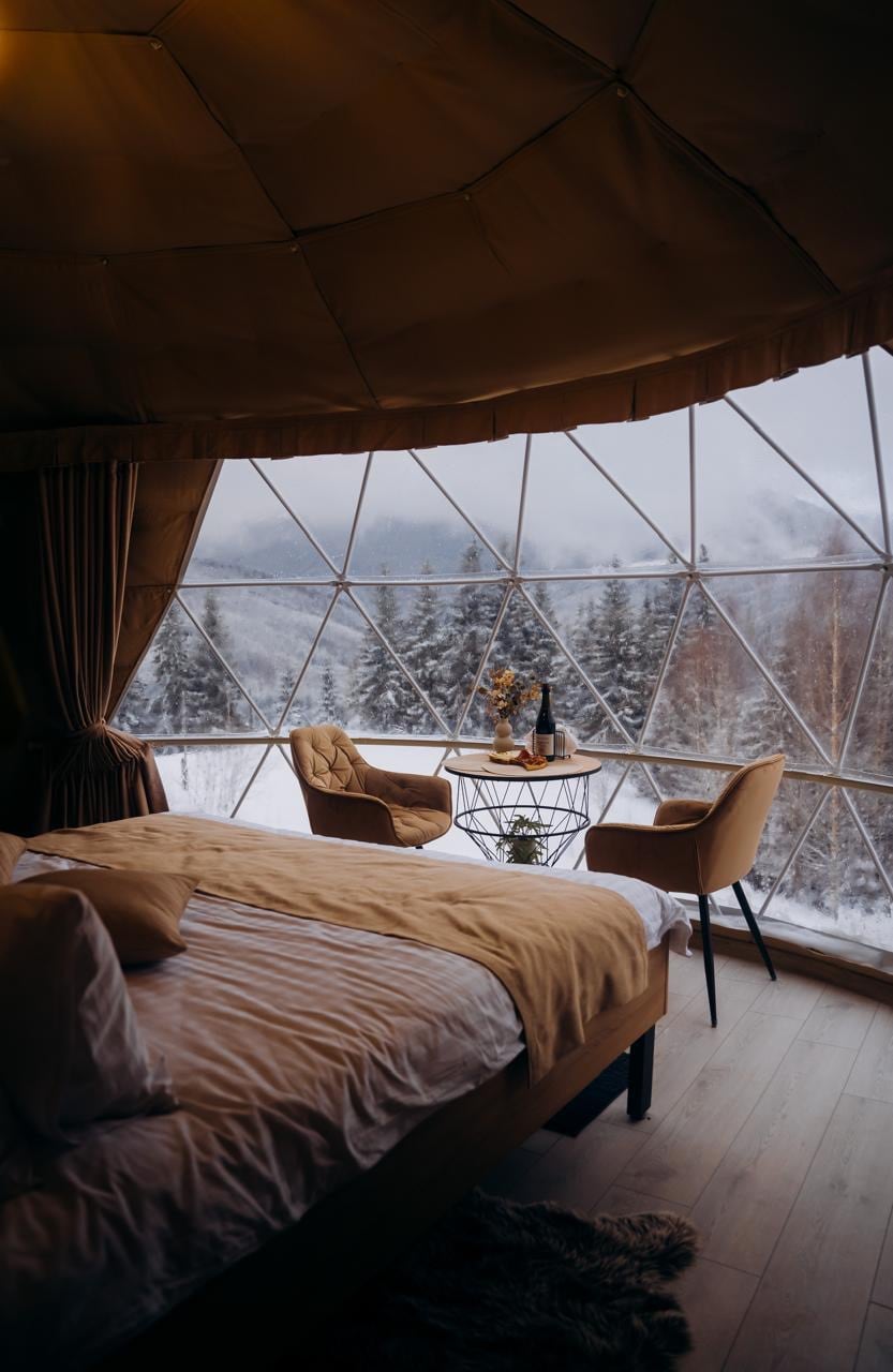 Отдых в собственном куполе с шикарной панорамой на зимние Карпаты, что может быть лучше? Только отдых в комплексе "де вайб - Ворохта"