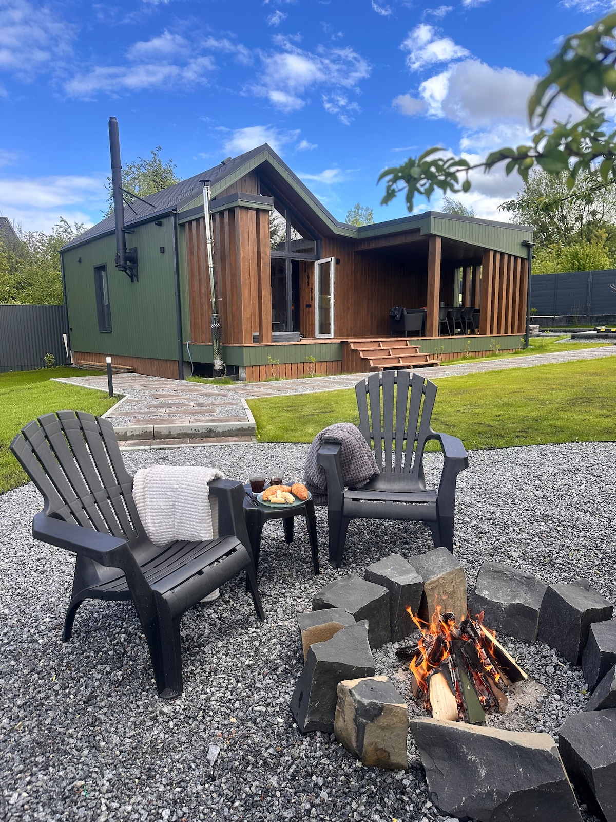 Just 60 km south of Kyiv, right outside the picturesque village of Vytachiv, you will find The Little Riverbird's Estate. Surrounded by old oak- and apricot trees, the wild piece of land embraces the visitor with a perfect feeling of adventure and solitude. The 75m2 house is facing, with it's big terrace and panoramic windows, the rising sun and the majestic Dnipro River.