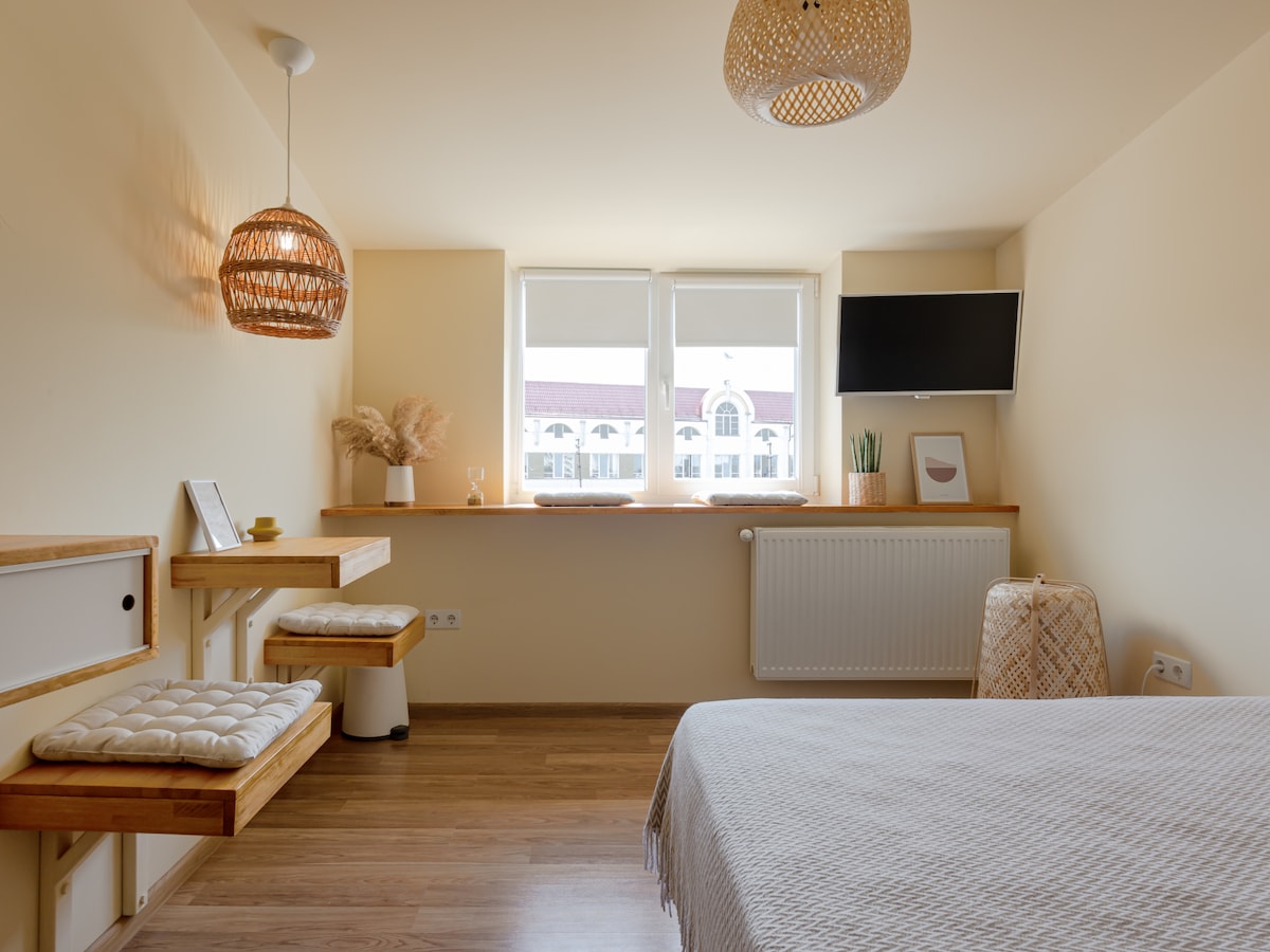 Designed for the convenience of a modern traveler, this place will make you feel like home. We've given a modern look to this space while preserving the original features of the XIX-century construction. We hope for guests understanding in case of power shortages due to the current situation in Ukraine, which are out of our control. Artisanal window shutters and original ceiling materials were added to make it unique and cozy.