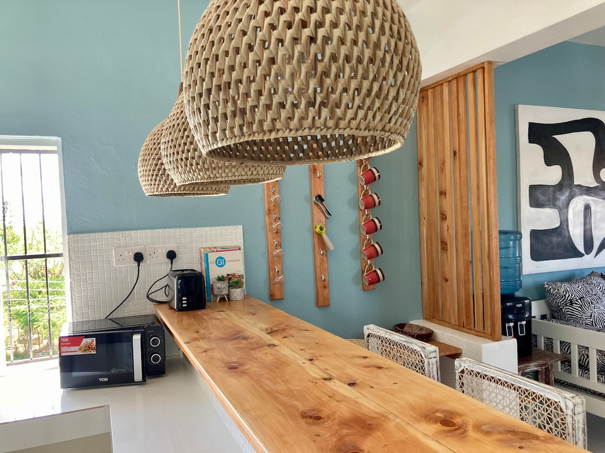 Unit A1: Warm, Naturally Styled Coastal Escape Unwind in this peaceful 1BR apartment that blends natural tones with modern comfort. Nestled in a quiet four-unit complex, it offers privacy, natural light, and a cozy feel. Just a 5-minute drive to Nomads Beach, restaurants, and supermarkets, and 7 minutes to the airstrip; perfect for couples or solo travelers seeking a peaceful coastal stay.