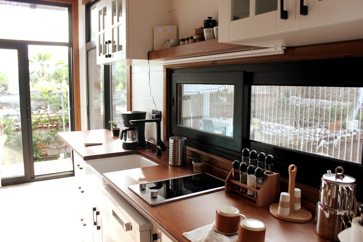 In the silence of the charming Akyaka nature, we set out for those who want to stay in touch with nature in a fully equipped tiny house in its own garden (500 m2) very close to Azmak Creek. There are 2 tinyhouses in the garden. The sitting area will only be available to our guests staying in this house. You will find your essential needs ready at home. It is also in a very good location for kite surf lovers, only 10 mins far away.