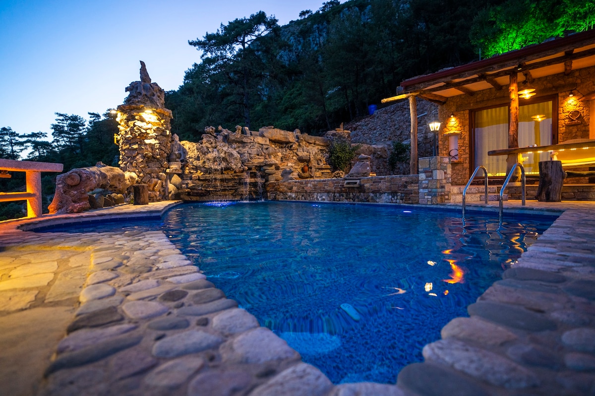 Escape to this luxury villa set in a private 5,000 sqm garden with a pool, wide porch, and elegant indoor and outdoor dining. With 3 bedrooms, spacious living areas, and a cozy wood stove, the home is just as inviting in fall and winter as in summer. Surrounded by birds, butterflies, and country life, the villa offers peace and privacy. And when you’re ready to explore, Akyaka Beach (11.5 km), Akçapınar (11.3 km), and Kite Beach (13.4 km) are just a short drive away.