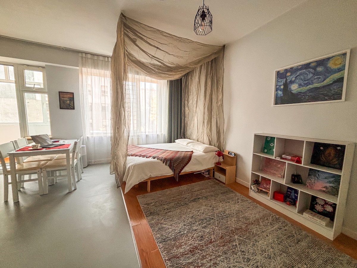 This is a 69 square meter, 1-bedroom apartment located next to the Natural History Museum. It has been renovated and is fully furnished with new furniture and electronic devices. The interior has a warm and cozy atmosphere with natural warm green and white tones. Within a 5-15 minute walk, you'll find centrally located department stores, museums, coffee shops, and restaurants. This apartment is perfect for those who enjoy walking and exploring the neighborhood.