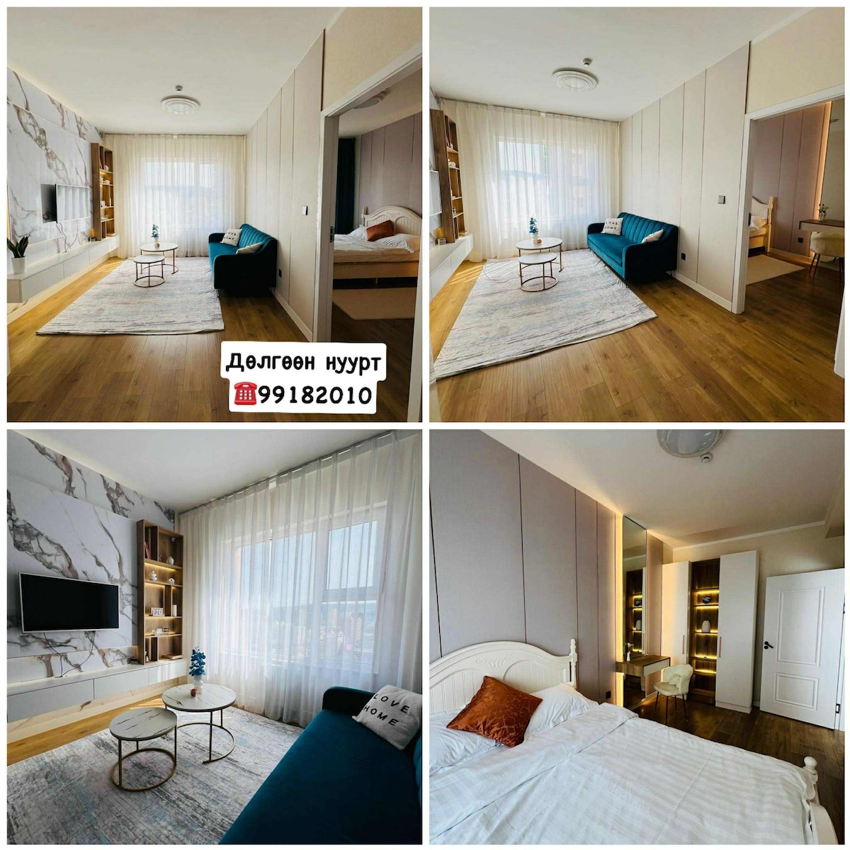 Lagshan Office Center에 위치한 프라이빗하고 고급스러운 숙소입니다. 세련되고 감각적인 인테리어로 꾸며진 본 숙소는 출장, 장기 체류, 여행객 모두에게 완벽한 공간을 제공합니다. 숙소 구성: 넓고 조용한 거실 모던하고 따뜻한 감성의 침실 2개 고급 타일과 최신 샤워시설이 갖춰진 욕실 2개 조리도구가 완비된 주방 천장 조명과 우드 플로어로 세련된 복도 공간 위치 안내: 울란바토르 시내 중심부 위치 정부기관, 비즈니스 센터, 카페 및 레스토랑까지 도보 이동 가능 대중교통 접근 용이 (버스 정류장 인근) 안전하고 관리가 잘 된 건물 (엘리베이터 있음) 14 층 건물에 10층에 위치 하고 있음 편의시설: 초고속 Wi-Fi 세탁기 에어컨 / 난방 전기레인지, 냉장고, 전자레인지 욕실 어메니티, 수건 완비 무료 생수 및 기본 조미료 체크인/체크아웃 체크인: 오전 12시 이후 체크아웃: 오후 1시 이전