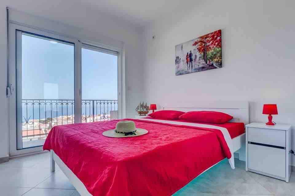 Svidjeće vam se elegantno uređenje ovog šarmantnog smještaja. Soba raspolaže sa velikim francuskim ležajem i pomoćnim krevetom, klima uređajem i terasom sa pogledom na plavo more.