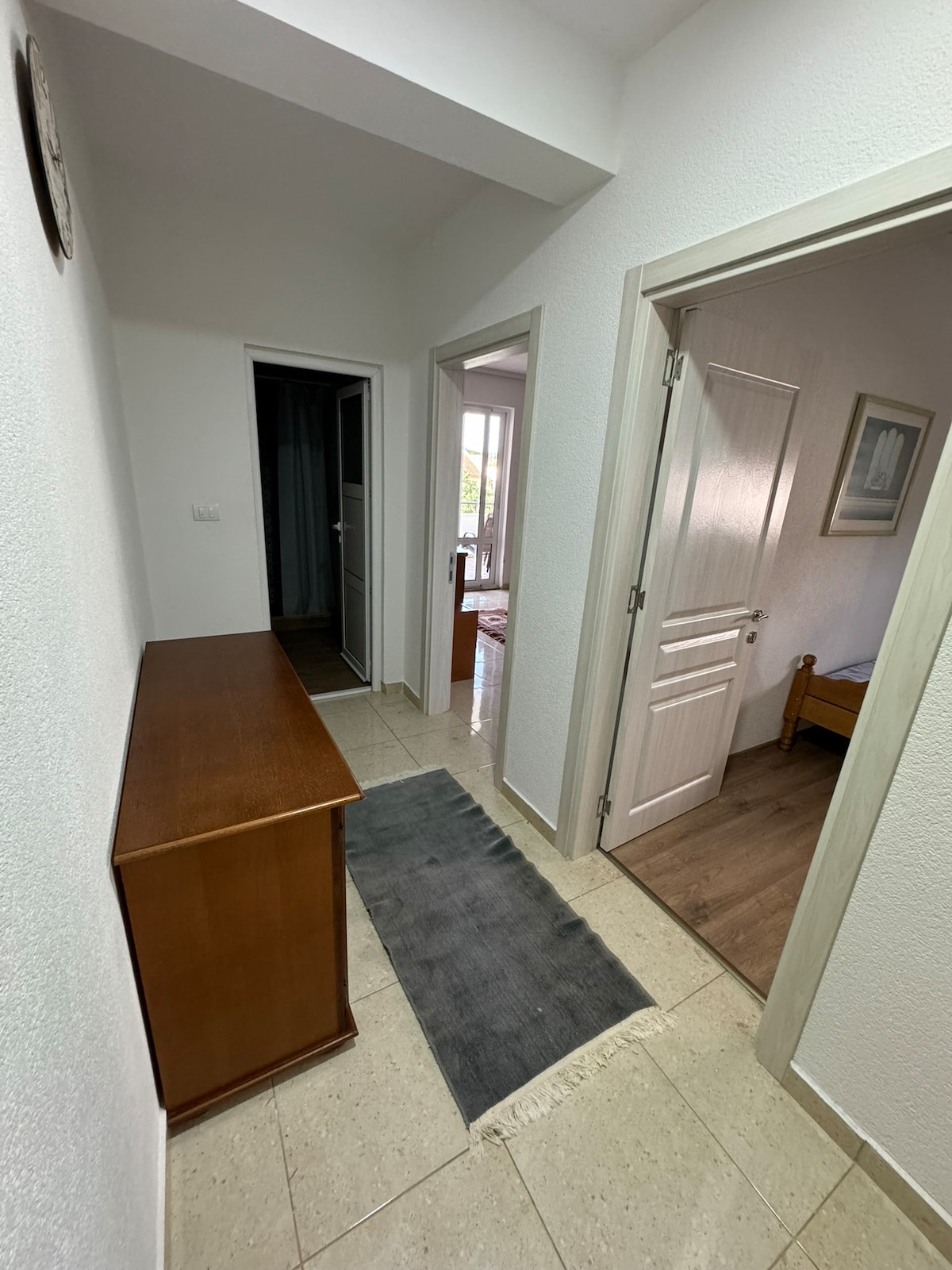Zaboravite na sve svoje brige u ovom prostranom i opuštajućem smještaju.ima zelenila apartman ima spavacu dnevni boravak kuhinju trepezarijski sto kupatilo ima klimu wifi terasu od 10m2 ima parking besplatan garazu za 6 parging prostora apartman ima zaseban ulaz ukupna kvadratura apartmana ima 55m2