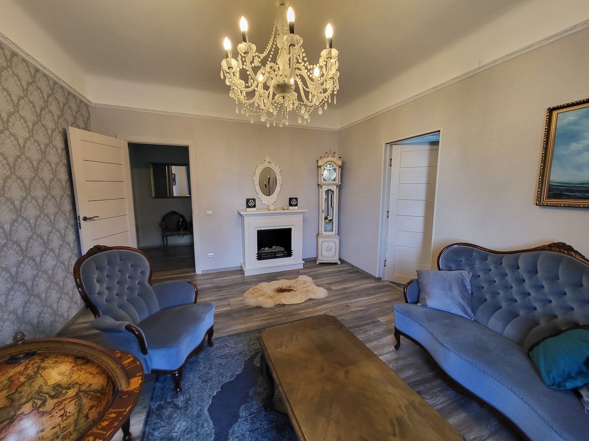 Enjoy your stay in our fully renovated apartment which is just an 8 minute walk from the Freedom Square and Old Town. Free Wifi and free private parking on site. Self check in and out. Our apartment is located in a historic building built in 1889 which is protected by the National Heritage Board. The building and the apartment are fully renovated. It is easy to get around the city center by foot, electric scooters and tram. Cafes, restaurants and grocery stores are close by.