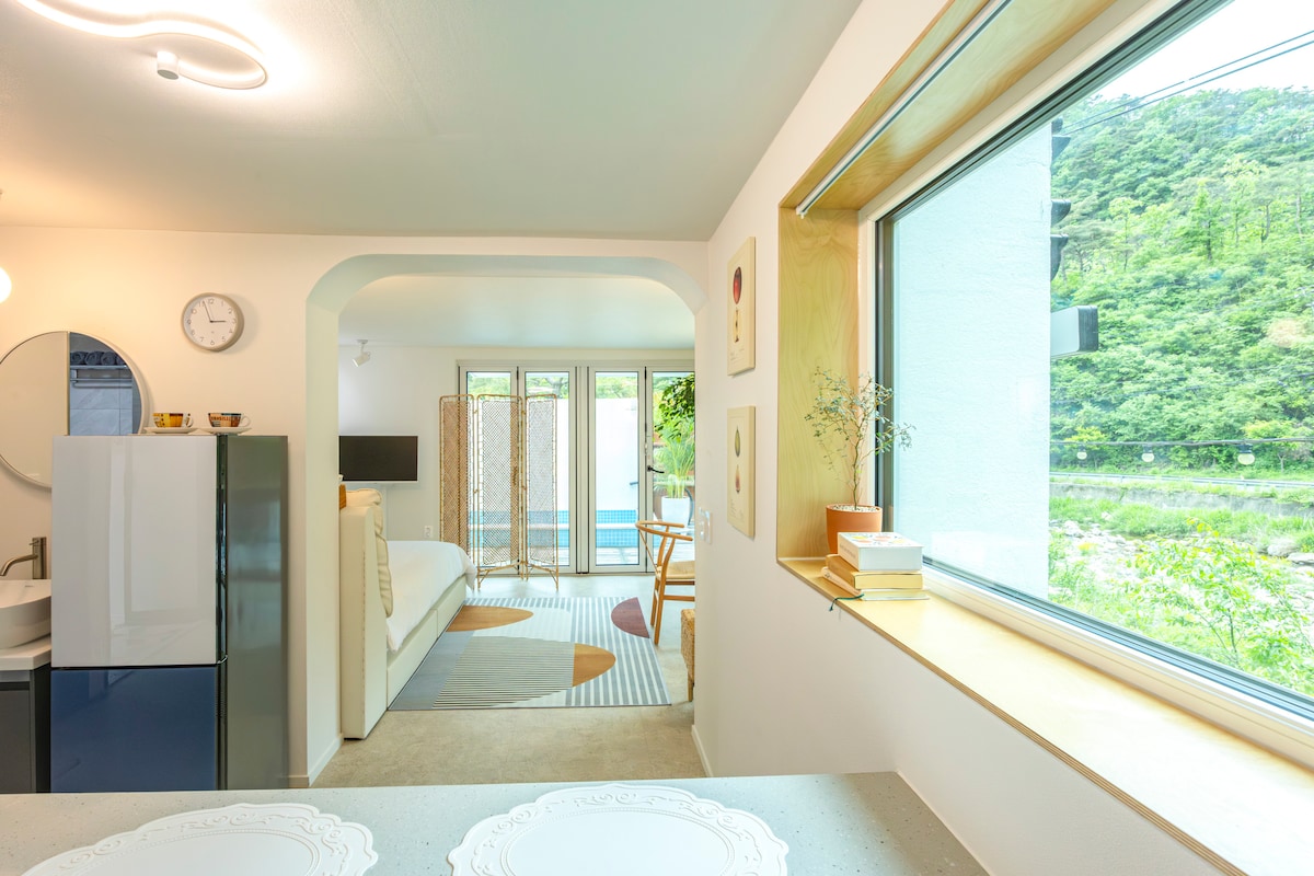 This house has traditional outlook(hanok) but its inside is modern style which is convenient and comfortable to stay. You can have enjoyable tea time at the wooden porch with great view. It is located 15 minutes away from the citycenter and there is a supermarket and small town 3 minutes distance from the house by car, and you can use free wifi in the house.