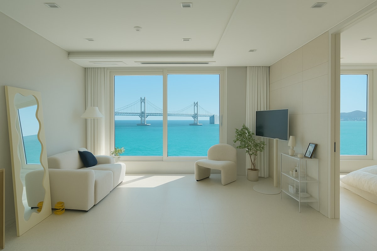 #釜山#光安里#3分钟到海水浴场#热门#广安大桥#海滨公园#密拉克德马市场#停车50%折扣