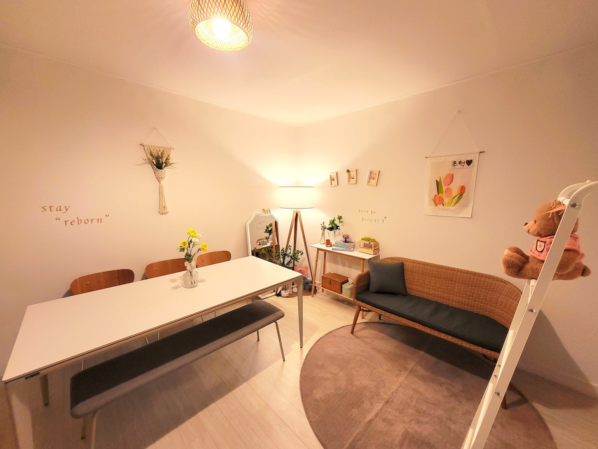 울산숙소 스테이 리본~🎀 🤗 stay "reborn"은 우드화이트 인테리어의 쾌적하고 따뜻한 공간으로 가족/친구/연인과 머무르기 좋은 넓고 아늑한 곳으로 낮은계단 2층에 위치합니다. 침실 2, 퀸침대3개,화장실1 최대6인까지 숙박가능하고, 주차🚙는 건물뒷편 주택가 골목에 노상주차합니다. 단 1일,6일에는 전통시장이 열리므로 한블럭 윗쪽 주택가나 도로건너편을 이용해주세요 (장날에는 대로변주차 가능-장이 파하는저녁시간 골목으로 이동주차) 숙소1층 부출입구로 나오면 바로 전통시장경험가능한 숙소랍니다. 🤗 위치 *울산IC에서 차량10분 *태화강국가정원 차량8분 *울산혁신도시 차량10분 *십리대숲먹거리단지 (130여개식당)차량5분 *버스정류장 도보2분 *ktx울산역가는 버스 도보13분 *마트,편의점 도보3분 *들꽃학습원, 입화산자연휴양림 차량 10분 *강동몽돌해변,일산지바다,대왕암공원 *장생포고래박물관 차량25분 🤗 숙소이용시간 *체크인 시간 16:00 *체크아웃 시간 11:00