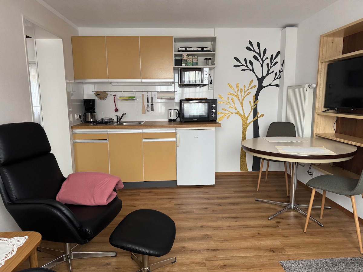 Willkommen in deiner liebevoll eingerichteten 2-Zimmer-Wohnung im Herzen von Ulm, nur wenige Schritte vom Ulmer Münster entfernt. Dich erwarten ein helles Wohnzimmer mit SmartTV, ein Schlafzimmer mit Kinderbett, eine Spiel-Ecke, eine schöne Loggia, eine voll ausgestattete Küche und ein modernes Bad. WLAN, Waschmaschine und Snacks sorgen für Komfort. In der Nähe gibt es zahlreiche Restaurants, Einkaufsmöglichkeiten und Parkhäuser – ideal für Urlaub oder Geschäftsreisen. Wir freuen uns auf dich!😊
