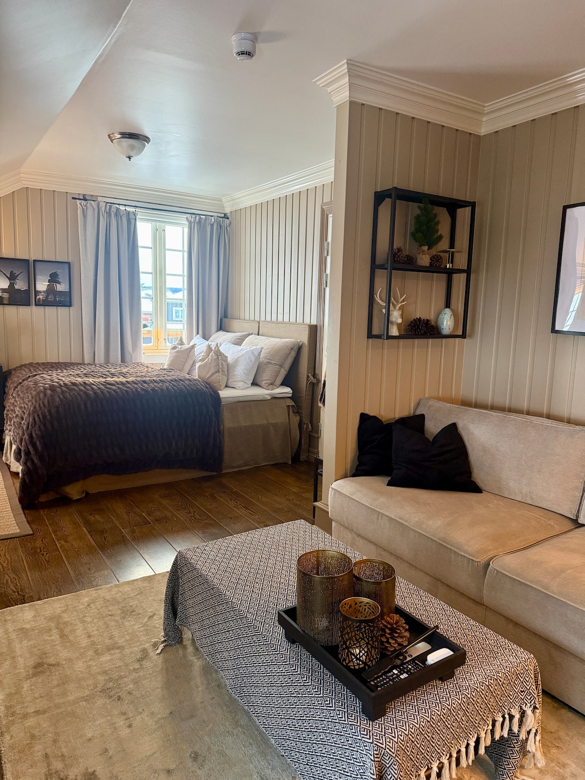 Newly built mountain lodge (2022) in massive wood. The apartment is inviting and cosy, with interior in Scandinavian style. You will find all the comfort and equipment you need to relax & enjoy delicious food and company after an active day! Have your morning coffee outside in the sun, overlooking the mountain tops. Light a fire, enjoy the views from the sofa & makes use of our books or boardgames. Maybe you prefer watching a movie on The Frame? Have a good night sleep in the fresh air!