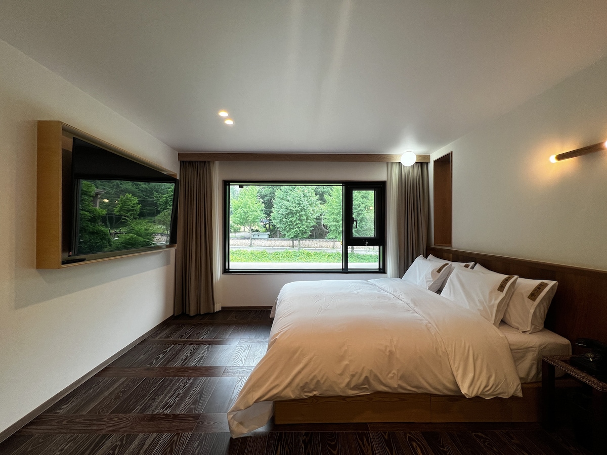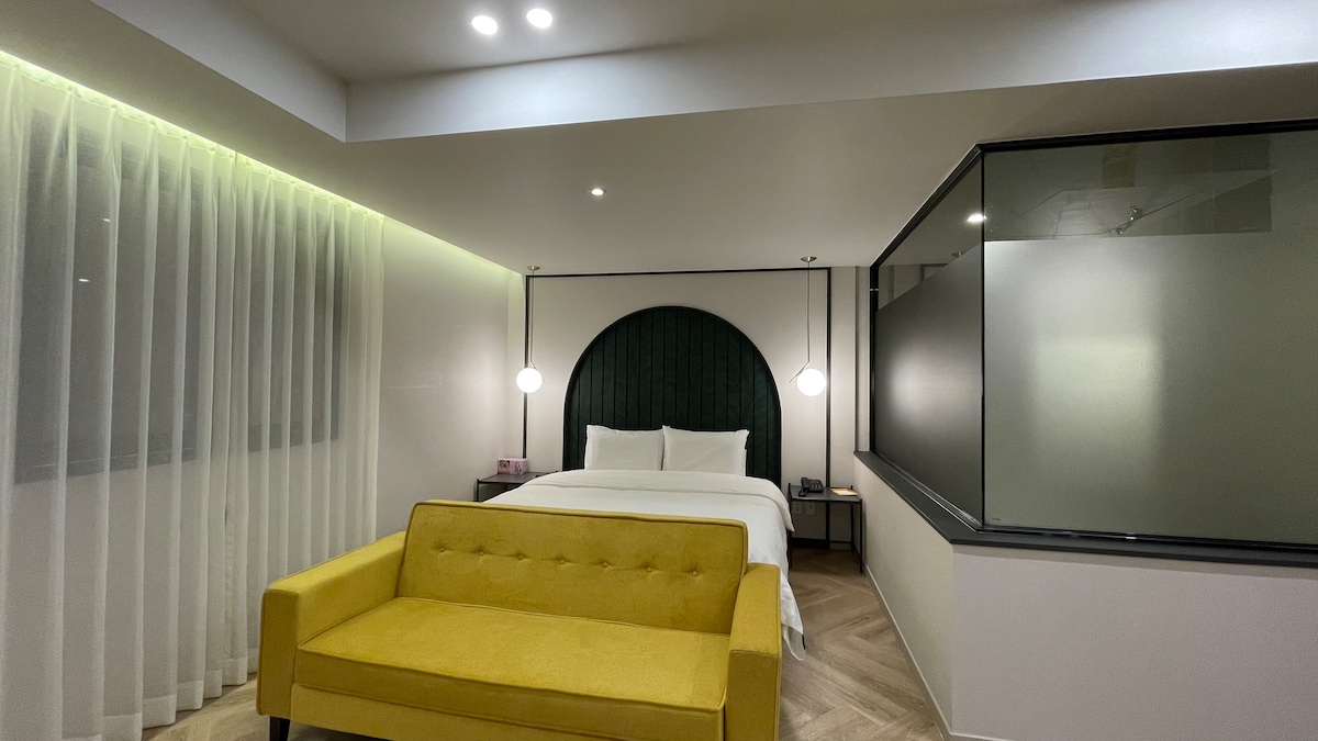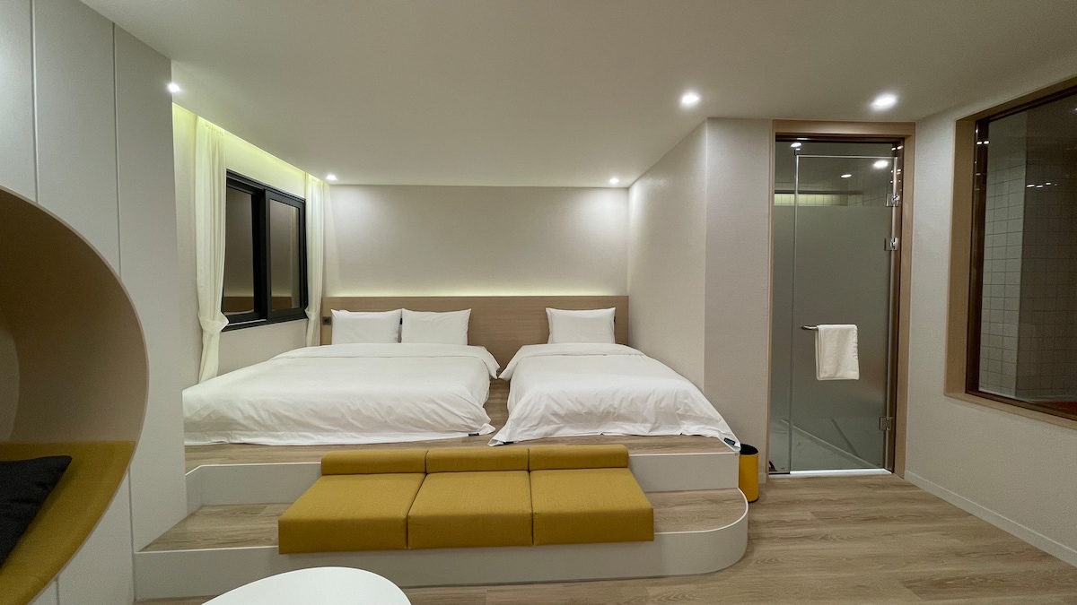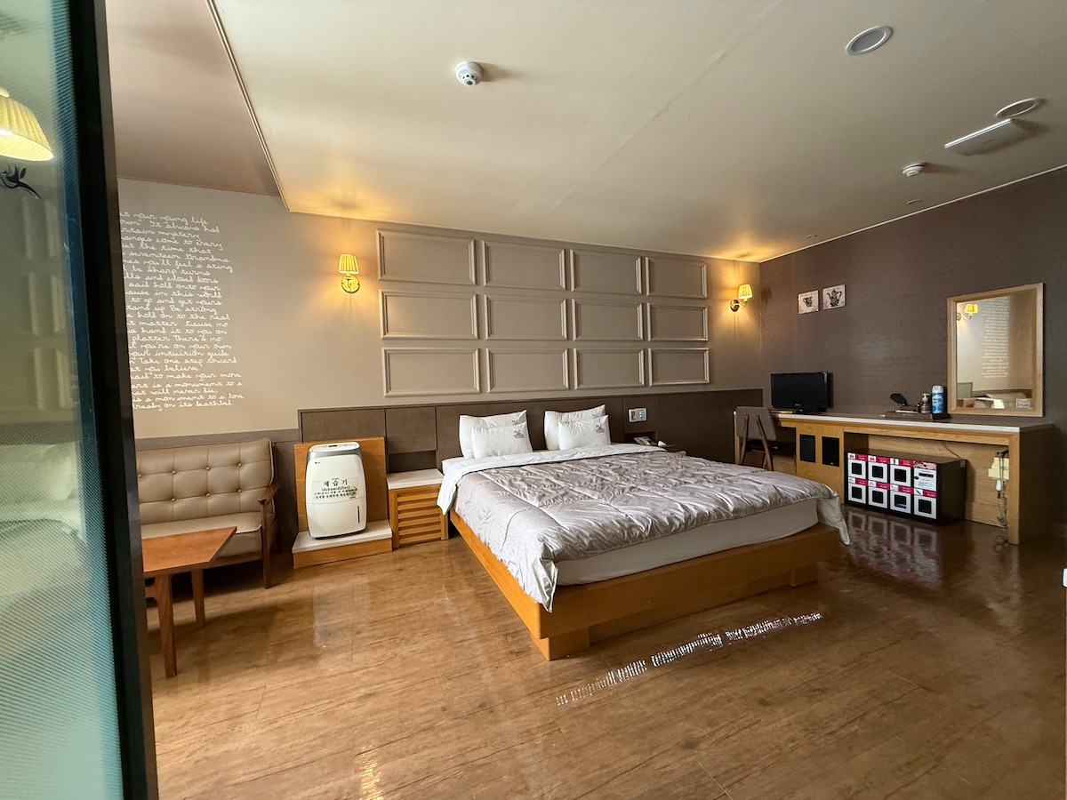 모던한 인테리어의 부띠끄 호텔입니다. 차로 10분 거리에 부산과 이어지는 기차역이 있으며, 시외/고속 버스터미널과도 근접하여 있어 이동에 편리합니다. *반려동물은 1박 당 1만원 추가요금이 발생합니다. (1마리 기준)