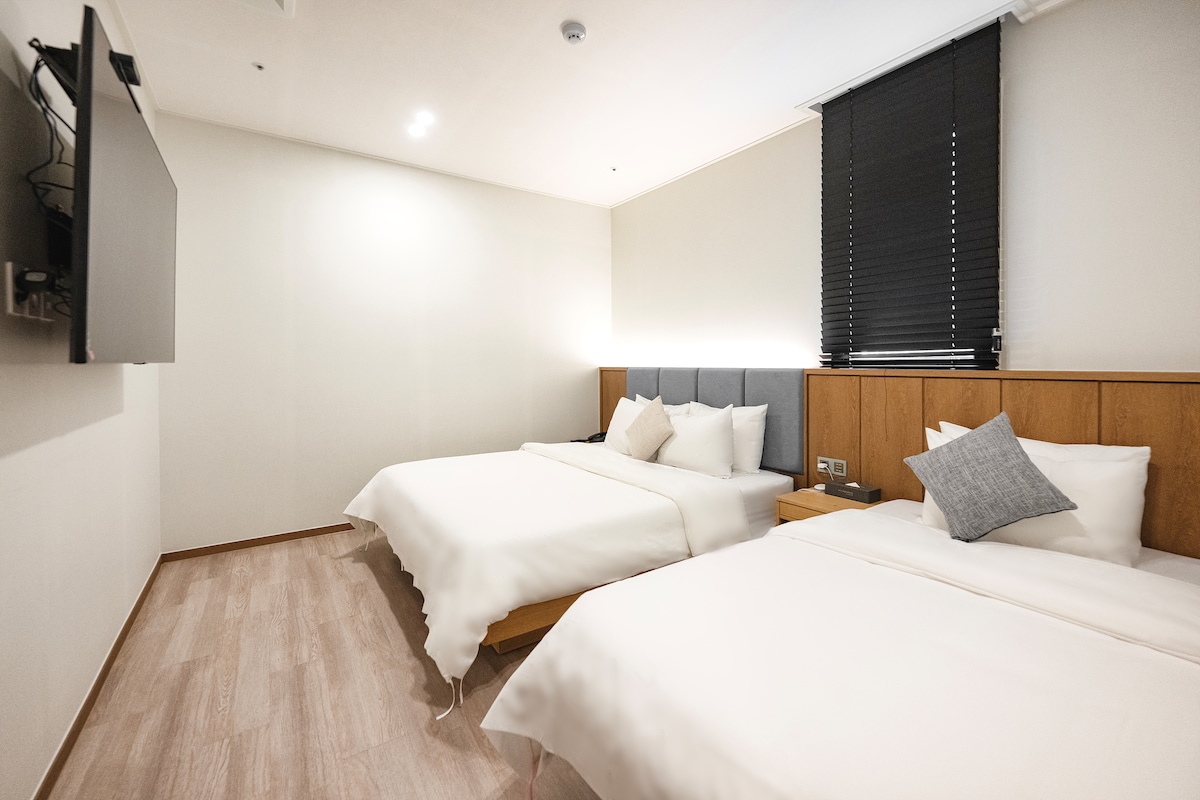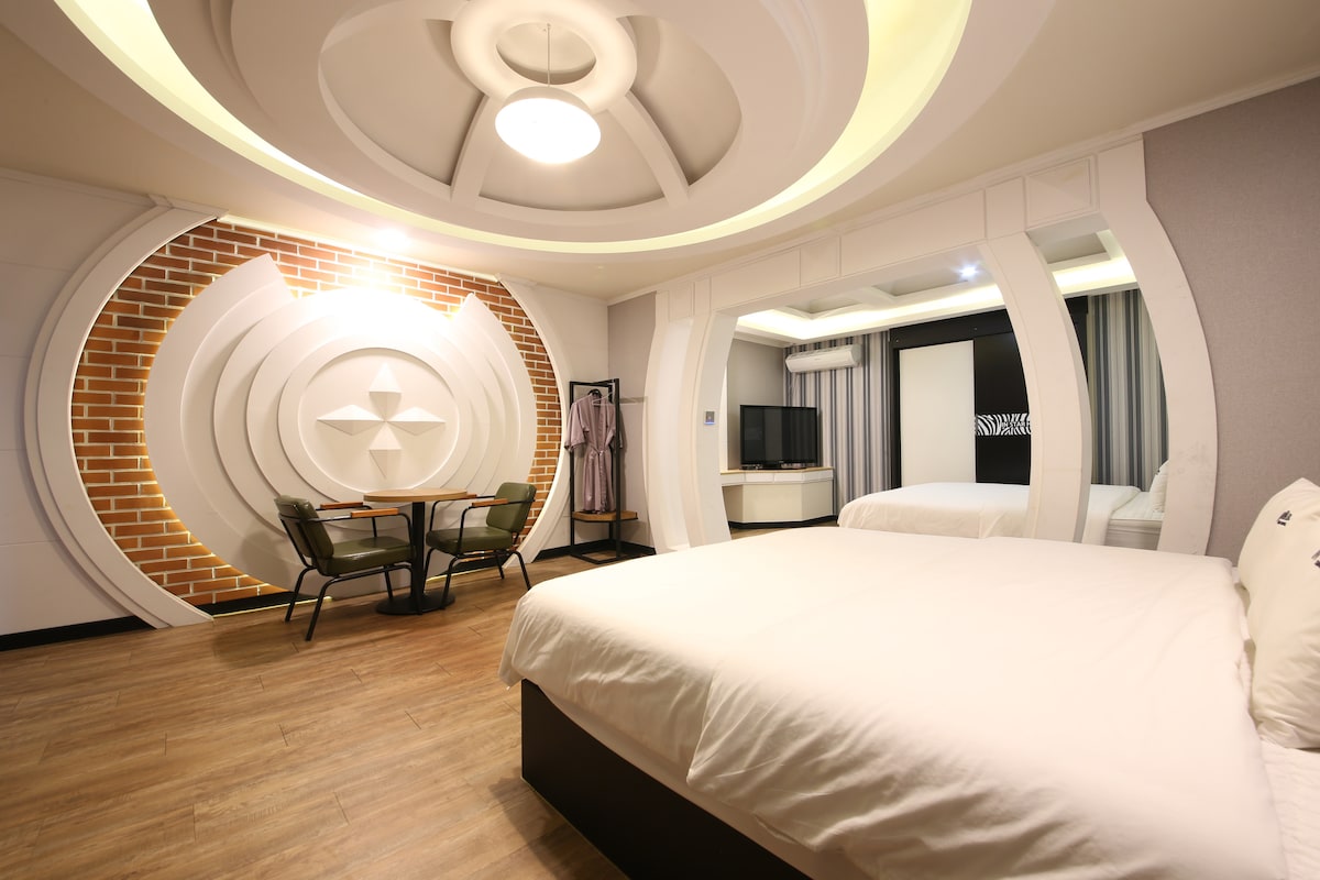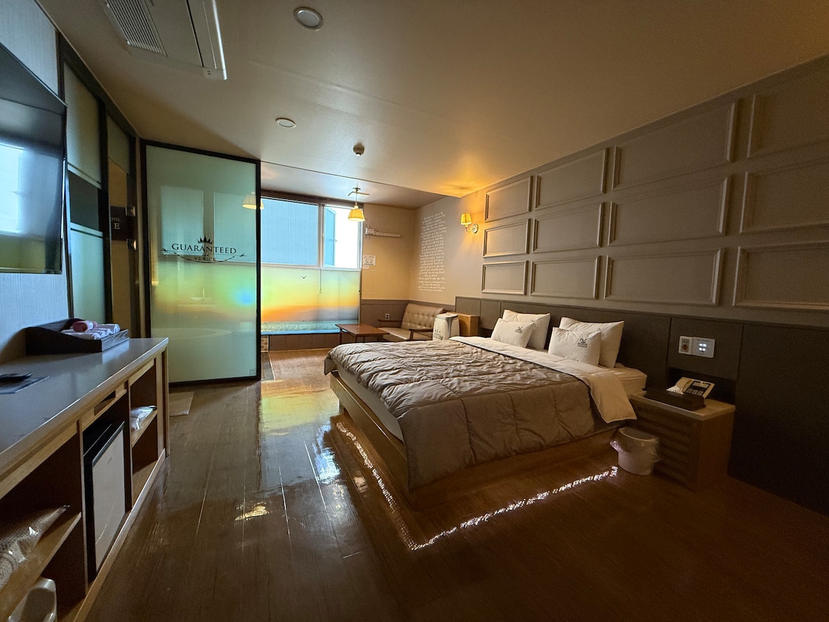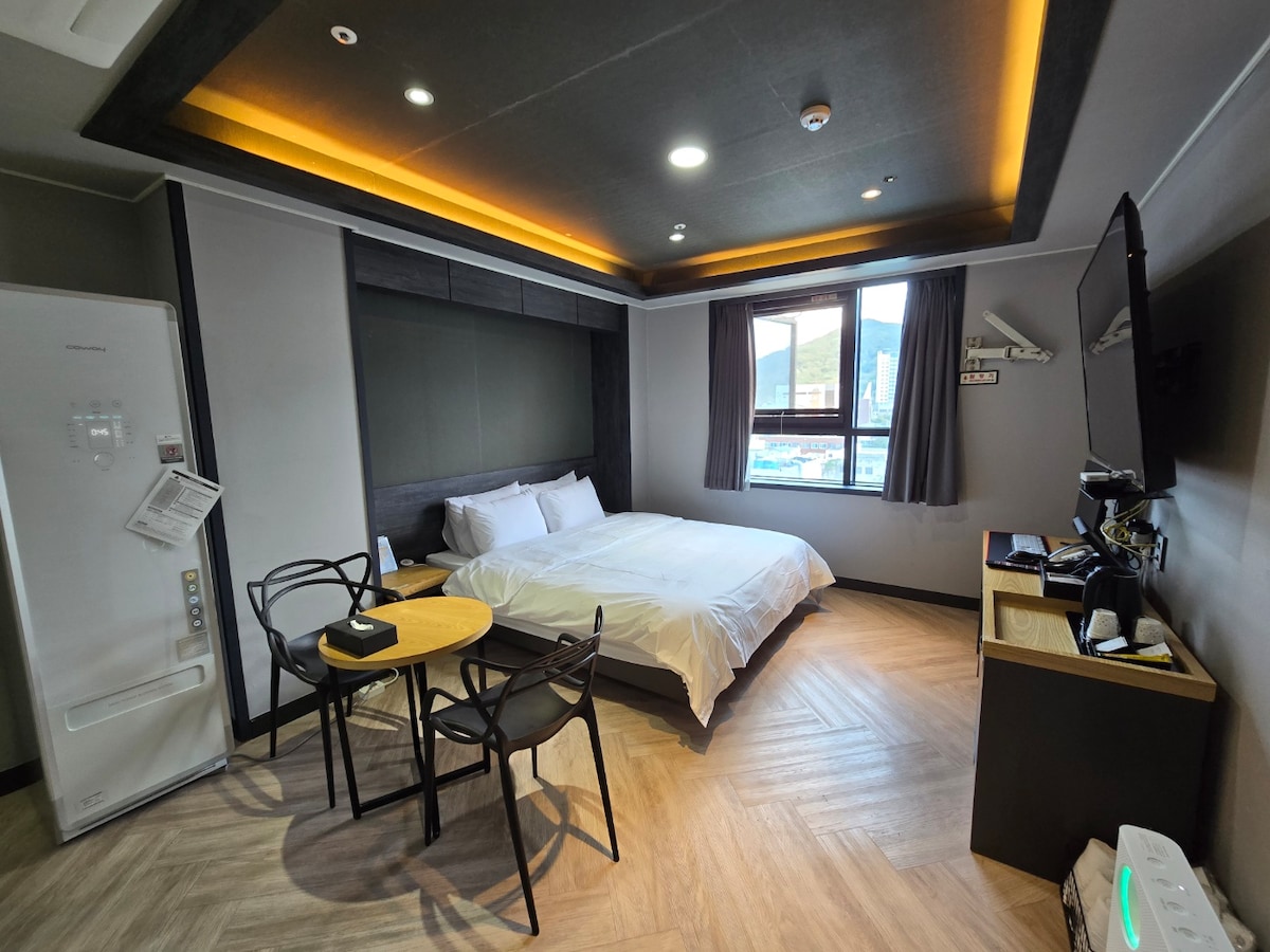 모던한 인테리어의 부띠끄 호텔입니다. 차로 10분 거리에 부산과 이어지는 기차역이 있으며, 시외/고속 버스터미널과도 근접하여 있어 이동에 편리합니다. *반려동물은 1박 당 1만원 추가요금이 발생합니다. (1마리 기준)