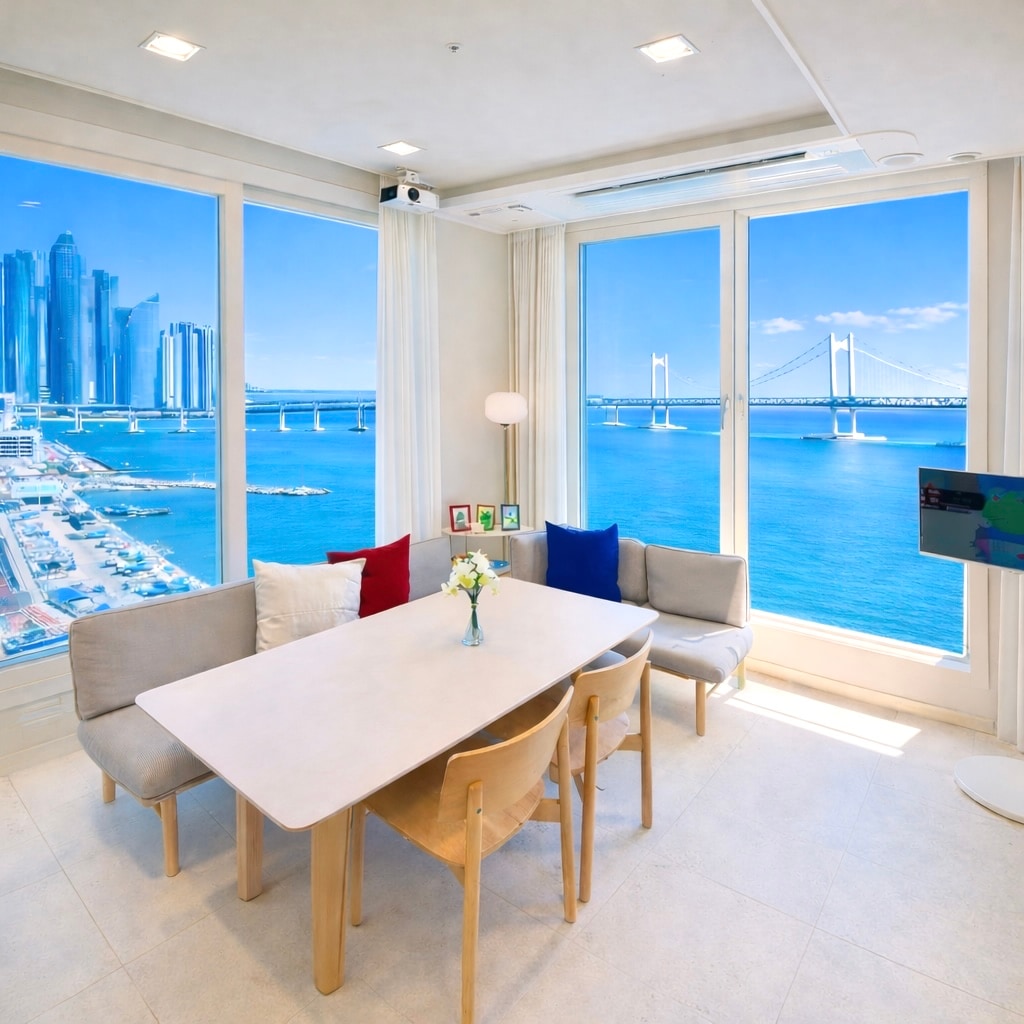 부산 해운대에 오신걸 환영합니다. 즐겁고 쾌적한 여행을 위해서 지불하신 소중한 요금이 아깝지 않도록 노력하겠습니다 Welcome to Haeundae in Busan. I will try not to waste the precious fare you paid for the pleasant and pleasant trip. 창문으로 바다가 한눈에 보이는 숙소입니다 It's a place where you can see the sea through the window. 혹시 방이 예약이 차있다면 제 프로필들어가면 방이 하나 더 있습니다 다른방도 확인해주세요