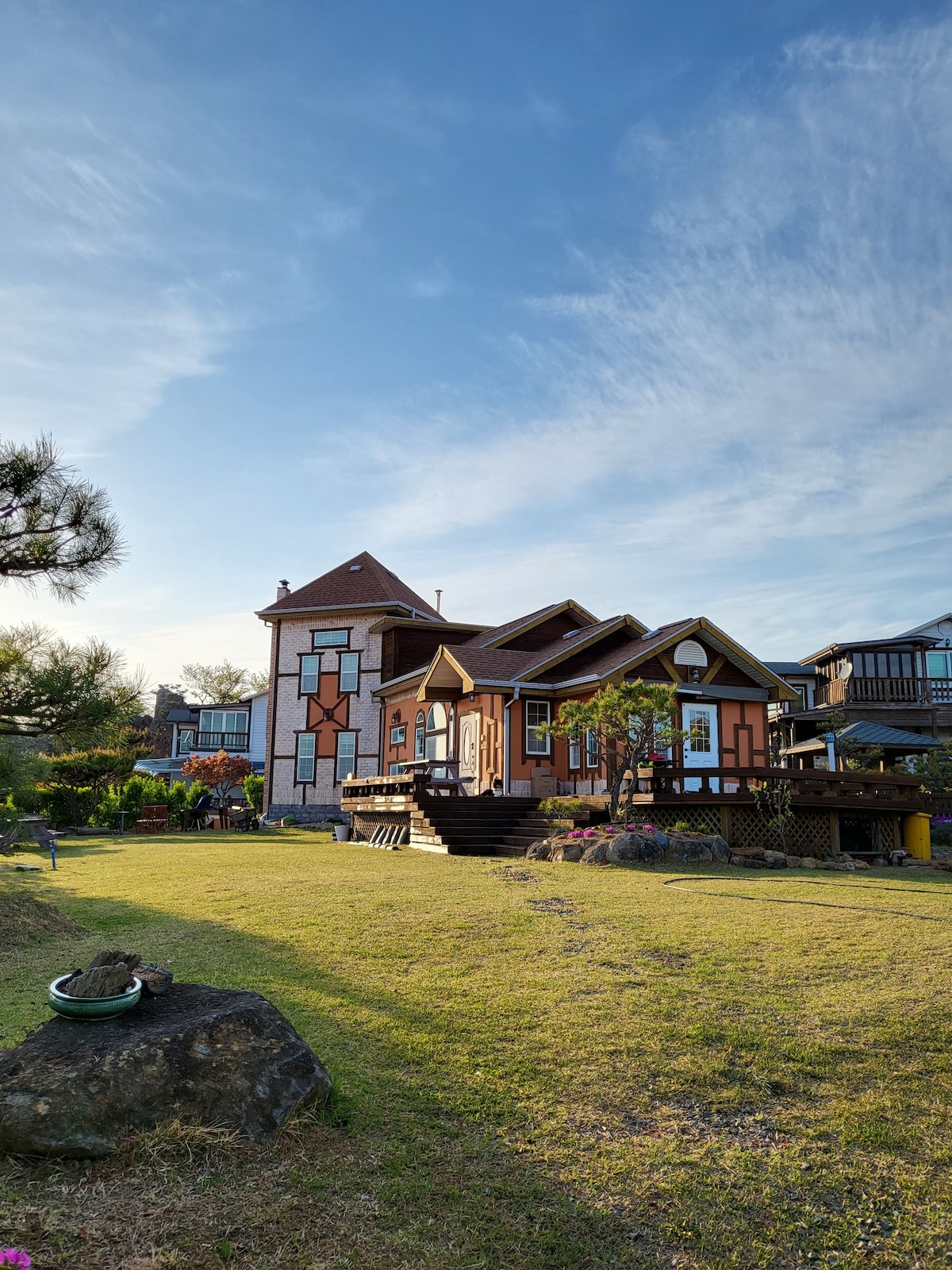 경남 양산 신전마을에 위치한 넓은 잔디마당을 가진 전원주택입니다. 도보로 이동가능한 500m거리에 간단한 물놀이와 고기잡이등을 즐길 수 있는 강이 있습니다. 게스트의 편안한 휴식을 위해 숙소의 청결에 특별히 신경써서 관리합니다. 침대매트리스는 주기적인 관리를 받으며 모든 침구류는 매번 세탁및 열풍건조합니다. 주변관광지 통도사 10km 내원사 6km 홍룡사 7km 다이아몬드cc 5km 양산cc 6km 동원cc 12km 에덴벨리cc 16km 물금서리단길15km 한송예술촌 5km 통도환타지아 10km 에덴벨리루지,스키장 16km 언양자수정동굴 15km 카페및 레스토랑 소토한우 하누마을 다이닝숲 토곡요 공간밈 스페이스나무 토곡정원 겟인상북 백비티라운지등 추가예약사항(이용금액별도) 바베큐장- 웨버 차콜그릴과 일회용석쇠, 숯, 집게, 가위, 장갑, 스텐식기, 버너, 부탄가스등이 제공. 비용3만원 불멍- 대형화롯대 참나무장작 토치 부탄가스 장갑등 제공. 비용2만원 .
