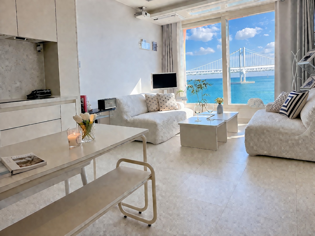 [광안 시크릿 오션룸] “눈앞에 펼쳐지는 바다, 감성 속에 머무르다.” 탁 트인 창 너머로 광안대교와 바다가 펼쳐지는 오션뷰 감성 숙소입니다 📍자연광이 가득 들어오는 포근한 공간에서, 음악과 함께 여유로운 시간을 즐겨보세요. 당신만의 부산 여행을 완성해줄 공간입니다. 연인·가족·우정 여행에 딱! 광안대교 Full Ocean View 📍광안리 해수욕장 바로 앞 감탄을 자아내는 광안대교 뷰를 침실과 거실에서 동시에 누려보세요. “눈앞에 펼쳐지는 광안대교 뷰, 그리고 아늑한 휴식! 프라이빗한 오션뷰 감성 숙소에서 특별한 하루를 경험해보세요. ✔️전면 통창 바다 전망 ✔️감성 가득한 인테리어 & 마샬 스피커 ✔ 신축 아파트 광안리에서 가장 인기 있는 1등 인기숙소 ✔ 탁 트인 오션뷰 + 해운대 시티뷰 + 광안대교뷰 ✔ 감성 가득 인테리어 & 프리미엄 어메니티 ✔ 밀락더마켓 활어센터 도보 거리 📍밤낮으로 다른 매력을 선사하는 최고의 전망. 사랑하는 사람들과 인생샷을 남겨보세요.
