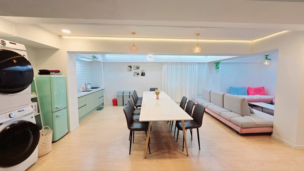 ✨ 위치·공간·가격 모두 만족하는 해운대 가성비 숙소 👥 인원 기준 2명 / 최대 3명 기준 인원 초과 시 추가 요금 (인원 추가 문의) 단체 모임 · MT · 계모임 · 워크숍 등 전체 대관 가능 🛏 침구 퀸침대1개 인원추가시 센스맘슈퍼싱글 토퍼 및 침구제공 🎬 엔터테인먼트 100인치 빔프로젝터 (넷플릭스 · 유튜브 · 각종ott 및 유선 TV) + 티비 🧴 비품 샴푸 · 린스 · 바디워시 치약 · 일회용 칫솔 · 폼클렌징 수건 · 휴지 조리도구 · 식기 냉장고 · 전자레인지 · 드라이기· 에어컨 세탁기 고데기 · 스팀다리미 (2층 오피스 앞) 📍 위치 해운대역 도보 3분 해운대 해수욕장 도보 2분 해운대 메인 스트리트 30초 편의점 1분 이내 올리브영 도보 30초 ℹ 기타 엘리베이터 없음 (계단 이용) 입·퇴실 전후 무료 짐 보관 가능 (2층올라가는 계단에 짐보관하는곳이 있습니다-시간제한없음)
