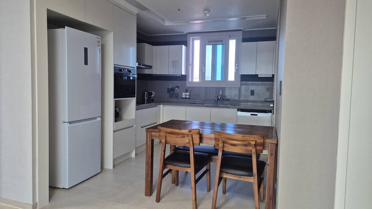 @stay8usanhang is a space overlooking Busan Port, thoughtfully designed to offer comfort and inspiration. Every detail, from music and fragrance to ambiance, interior, and bedding, has been carefully curated to enhance your stay. -Sky bridge connected to Busan Station (5-minute walk) -1 Super King bed, 3 Super Single beds Ocean-view bathtub (spa-ready) - Fully equipped / ideal for family travelers 50-inch large TV with Netflix, YouTube, OTT, and broadcast channels Bang & Olufsen speakers