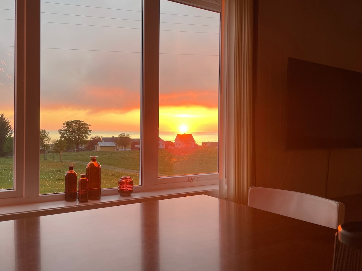 A lovely well-equipped 90 square meter 2 bedroom apartment directly overlooking the surf beach in Flø. It has stunning views of the ocean and the sunset from all rooms, wheel chair access, a large deck with a play area, and a private driveway with free parking for two cars. The changing light is one of the main attraction in Flø, along with the white sugary beaches, waves, otters, eagles, seals, surfing, climbing and spectacular sunsets. If you enjoy the outdoors, Flø is the perfect playground.