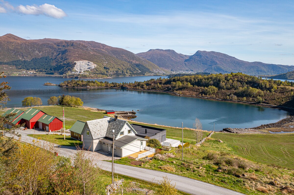 Huset ligg idyllisk til 3 km frå sentrum, mot Flø. Ca 100 meter frå huset er det ei nydeleg badestrand (sjå utsikt på bilda) -og det er fine turområder både til fjells og langs sjøen rett frå huset. Her kan man altså både slappe av i rolege omgjevnader, eller oppsøke turistmål og aktivitetar med korte avstandar. Dette er nemleg også ein perfekt base for utflukter til f.eks Sunnmørsalpane. Til Hareid med båt over til jugendbyen Ålesund er det ca 20 km. Sjå også "Om stedet" under
