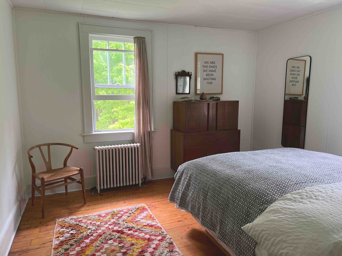 Relax and unwind in our bright and private 2BR apartment located at the edge of Unison Arts Center’s sculpture garden (paths through woods and fields). A mile from New Paltz on the way to Mohonk Preserve, this simple but comfortable space features work by local artists and regional photographs. One of the bedrooms has an additional half-bathroom with a hand-made mosaic. Guests have their own entrance.