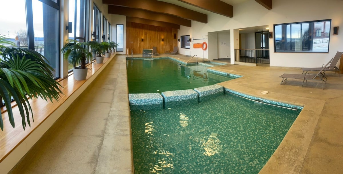 可欣赏峡湾和游泳池景观的漂亮家庭公寓
