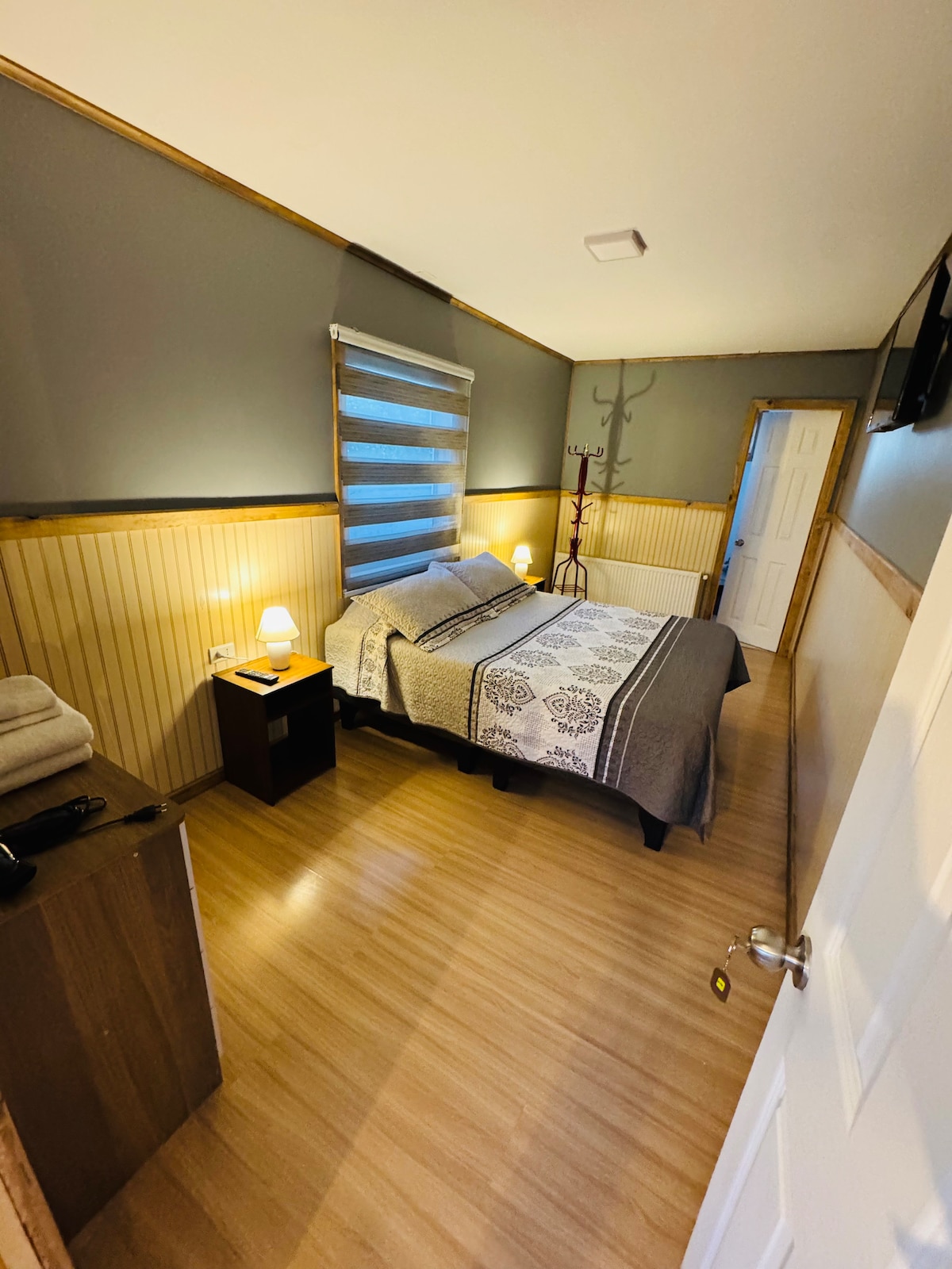 habitaciónes matrimoniales con baño privado, cocina compartida, calefaccion central, wifi,tv, toallas,secador de pelo,instalaciones nuevas ,TV ,un alojamiento tranquilo detras de la casa principal con acceso independiente,estamos ubicados a pocas cuadras de la estación de buses de la ciudad de Puerto Natales,locomoción en la puerta de la casa ….. Te esperamos a pasar unos lindos días en nuestra ciudad !! BIENVENIDOS ❤️