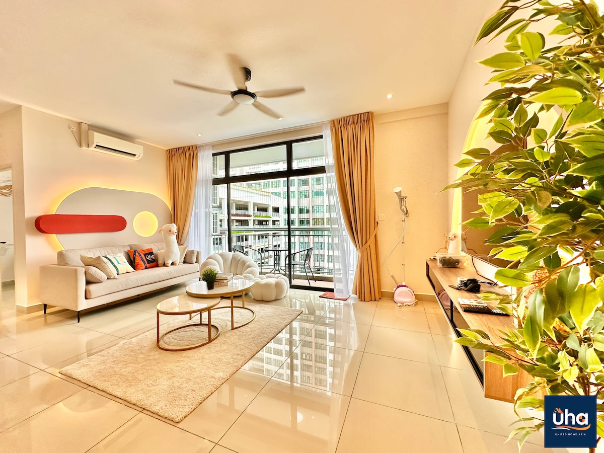 Emgrace Home 4+1 guests l 2 Queen Beds l 1 Sofa Bed • AEON & IKEA (8 Mins) • Mid Valley Southkey (13 Mins) • KSL (15 Mins) • CIQ (18 Mins) **One FREE indoor parking (1 car) **24hrs gated and guarded **Guest access **No Smoking Check-in time : 3pm Checkout time: 12pm *Early check-in/late checkout: RM15 per extra hour, subject to availability. *Some interiors were updated on 25/6/2025. Guests after this date may see slight differences from booking photos.
